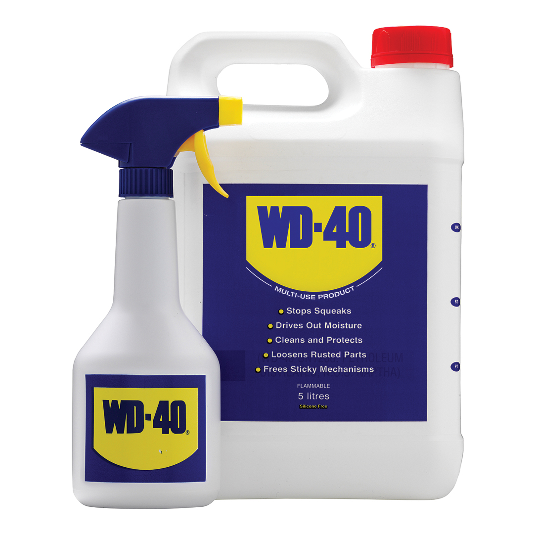 يوفّر WD-40® طبقة حماية ضد الصدأ والعوامل البيئية، ويساعد على إعادة الحركة للقطع المعدنية الملتصقة، كما يطرد الرطوبة عن المعدات والأجزاء الكهربائية بعد فصل التيار الكهربائي. بالإضافة إلى ذلك، يزيل الشحوم والأوساخ وبقايا المواد اللاصقة عن معظم الأسطح دون الإضرار بالأقمشة أو البلاستيك أو المطاط.