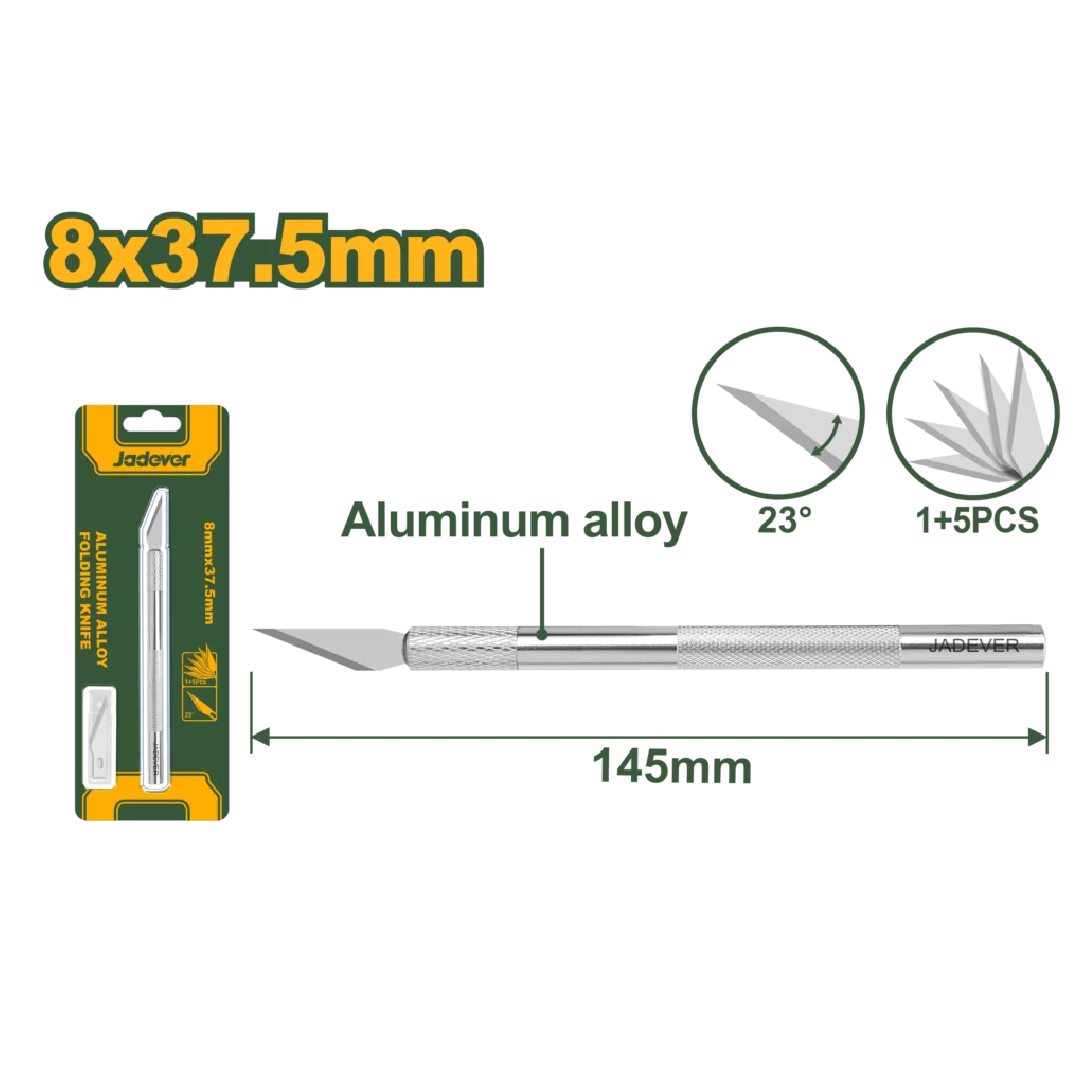 اسم المنتج بالعربي: مشرط قلم المنيوم مع 5 نسلات من JADEVER