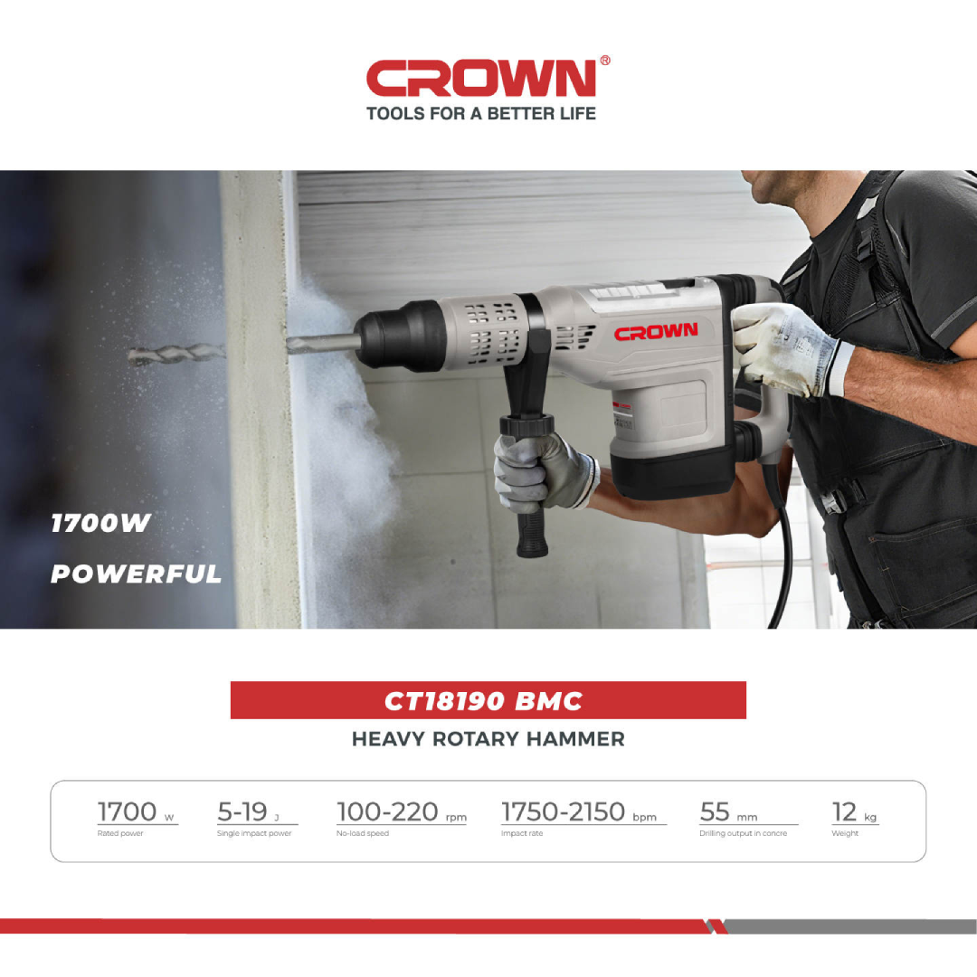 Crown 55mm 1700W Demolition Hammer | CT18190 VendorCrown Share WhatsApp Deel X Pin it Messenger Email Crown 55mm 1700W Demolition Hammer | CT18190 VendorCrown Share WhatsApp Deel X Pin it Messenger Email Product form SKU: CT18190 Description: A powerful Crown demolition hammer designed to handle tough drilling and demolition tasks in concrete and other hard materials.... Read more 470.000 JD Excl. VAT Quantity Add to cart This item is a recurring or deferred purchase. By continuing, I agree to the cancellation policy and authorize you to charge my payment method at the prices, frequency and dates listed on this page until my order is fulfilled or I cancel, if permitted.