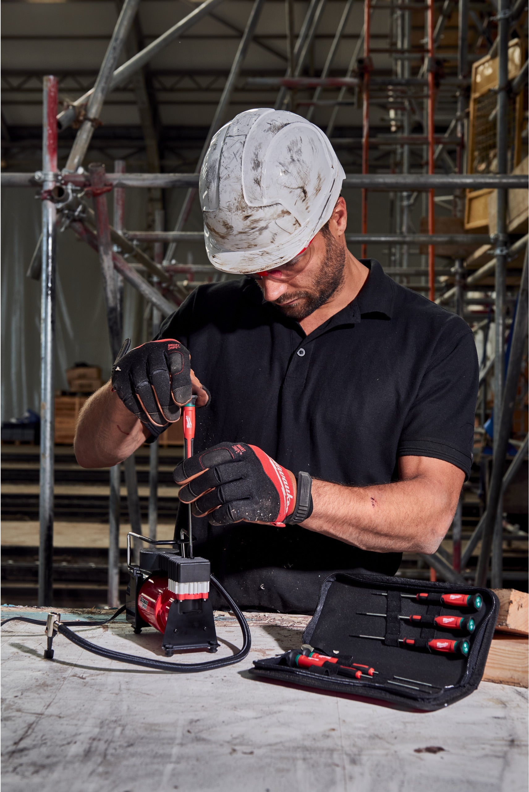 الوصف: تم تصميم مجموعة مفكات البراغي الدقيقة Torx المكونة من 6 قطع من Milwaukee لمهام التثبيت التفصيلية التي تتطلب الدقة والتحكم. يتميز كل مفك براغي بقلب معدني بالكامل لتعزيز المتانة وغطاء خلفي يدور بزاوية 360 درجة لتسهيل الدوران السلس والمتحكم فيه. تقاوم السيقان المطلية بالكروم التآكل، مما يطيل عمر الأداة، بينما توفر السيقان الأطول رؤية محسنة ووصولاً ممتدًا أثناء الاستخدام. تتضمن المجموعة حقيبة متينة بسحاب قوي للتخزين الآمن والنقل السهل.