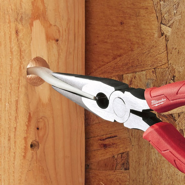 الوصف: تم تصميم كماشة Milwaukee Comfort Grip ذات الأنف الطويل مقاس 8 بوصات للمحترفين الذين يحتاجون إلى الدقة والمتانة. تتميز هذه الكماشة بأنف إمساك مقاس 2 بوصة، مما يسمح بسحب الأسلاك والمواد بسهولة من خلال الثقوب الخشنة والأماكن الضيقة. تم تصميم رأس الثقب المتكامل لتنعيم الجزء الداخلي من الأنابيب التي يصل قطرها إلى 1-1/2 بوصة، مما يلغي الحاجة إلى أدوات إضافية. يعمل ساحب الشريط الموجود على متن الطائرة على تعزيز الوظائف، بينما تضمن مقابض الراحة المصبوبة بشكل مفرط الراحة طوال اليوم دون تقشير في ظروف موقع العمل. تم تصنيع هذه الكماشة لتكون قوية ومجهزة بحماية من الصدأ، وهي مصممة لأداء يدوم طويلاً.