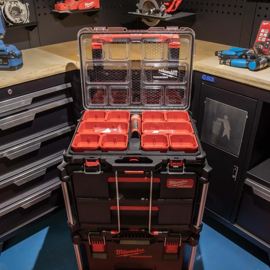 مجموعة Milwaukee PACKOUT™ Starter Set هي حل تخزين معياري مصمم للمحترفين الذين يبحثون عن المتانة والتنوع. تتضمن هذه المجموعة صندوق عربة وصندوق أدوات مكون من درجين ومنظم نحيف، وكلها مصنوعة من بوليمرات مقاومة للصدمات لتحمل ظروف موقع العمل القاسية. تتميز بختم مصنف IP65، وتوفر حماية فائقة ضد الماء والغبار والحطام، مما يضمن بقاء الأدوات والمعدات آمنة ومنظمة. بفضل نظام التشابك الآمن، تسمح مجموعة PACKOUT™ بتكوينات تكديس قابلة للتخصيص، مما يجعلها حلاً مثاليًا للحرفيين الذين يحتاجون إلى نظام تخزين مرن وفعال.