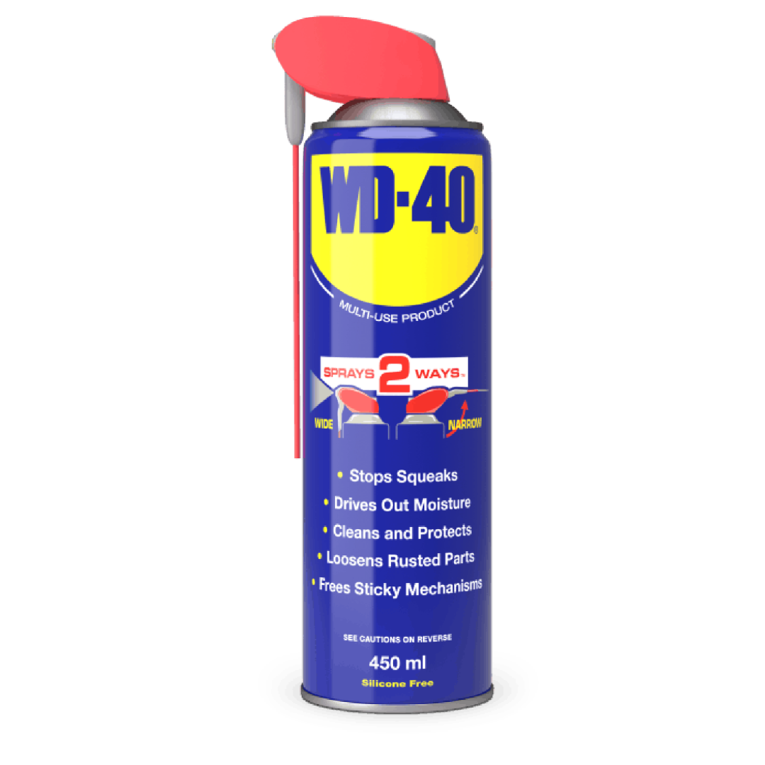 WD-40 420ml Aerosol with Smartstraw. WD-40 Smart Straw: the original WD-40 that now comes with a permanently attached straw. WD-40 protects metal from rust and corrosion, penetrates stuck or jammed parts, displaces moisture, and lubricates just about anything. WD-40 is also great when it comes to cleaning grease, grime, and other marks from most surfaces.