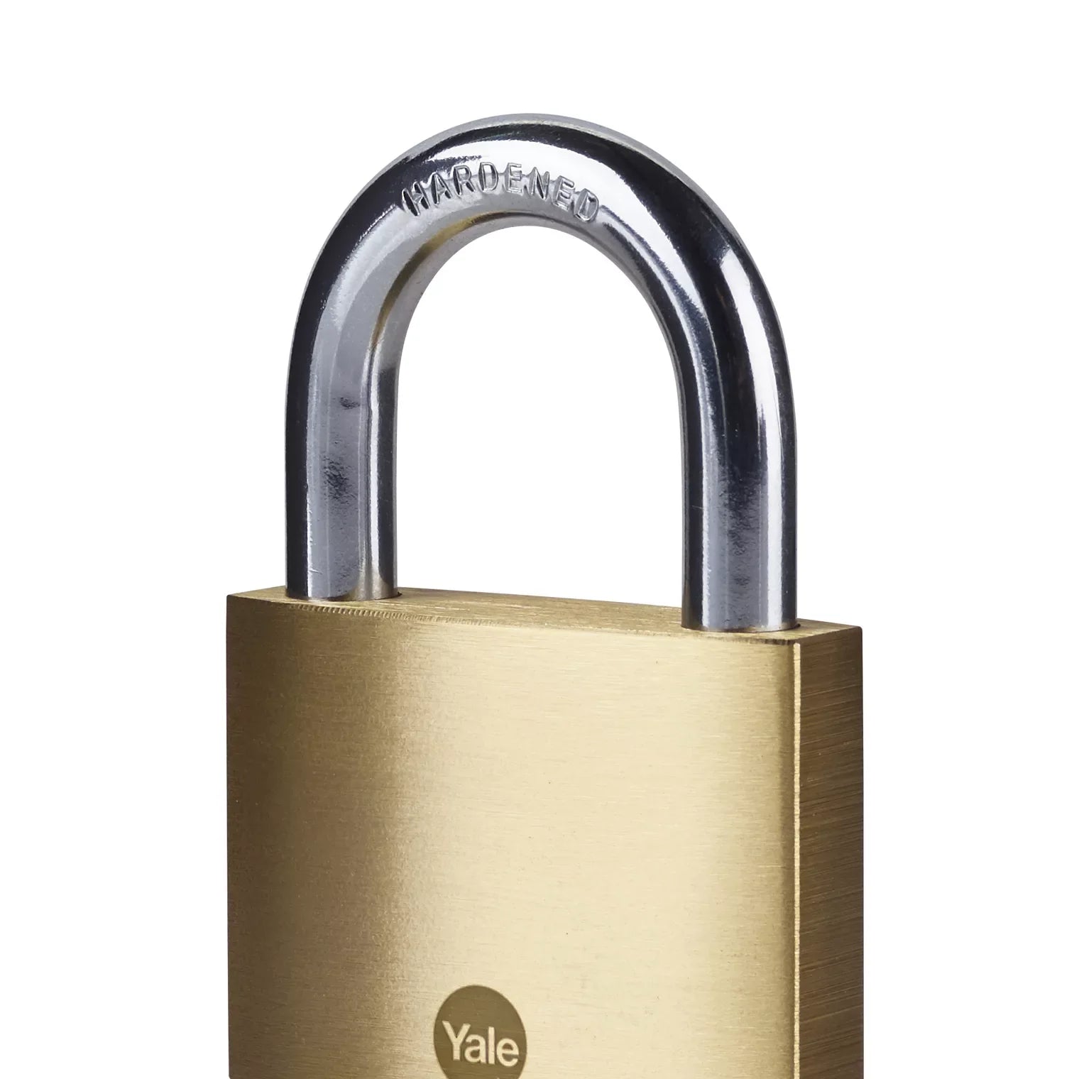 تم تصميم قفل Yale المصنوع من النحاس مقاس 50 مم لتأمين الممتلكات في البيئات الداخلية والخارجية. يتميز بجسم من النحاس الصلب وقيد من الفولاذ المقوى، مما يوفر مقاومة ضد القطع والدخول القسري.
