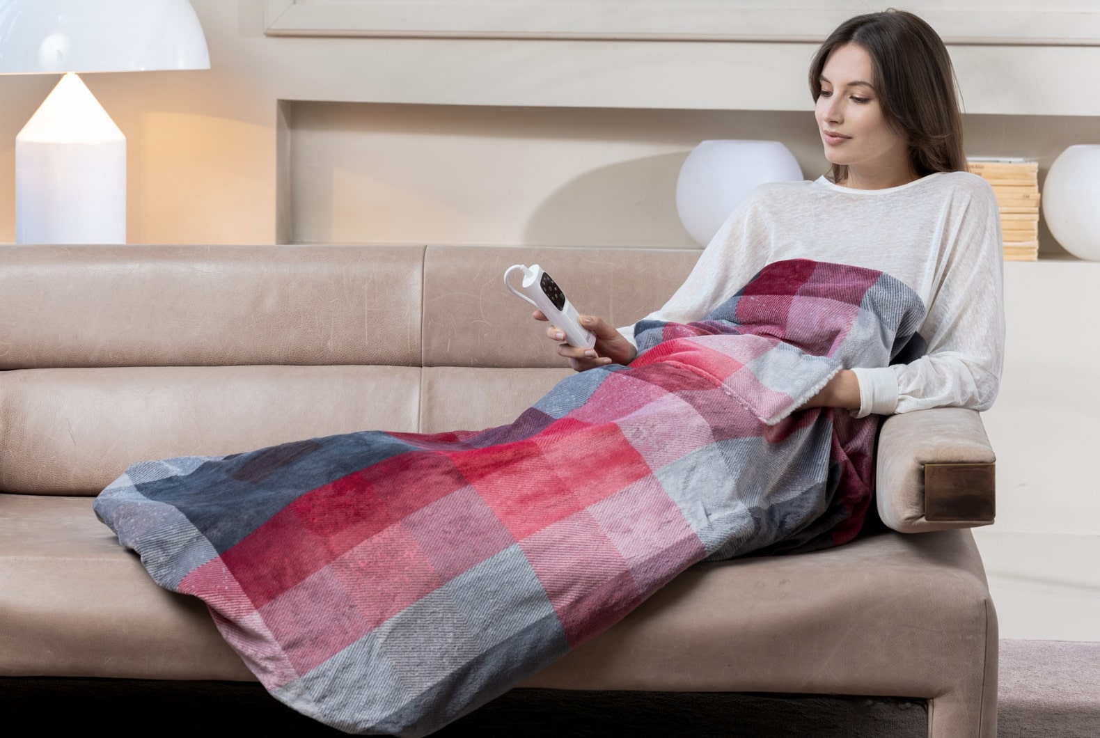 بطانية صوفا كهرباء 150*110 سم بجيوب من Imetec Adapto - رمادي وأحمر