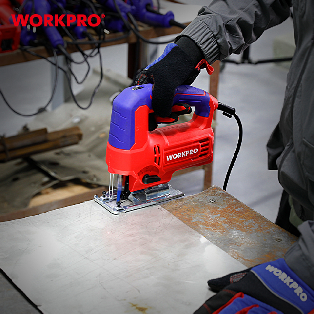 منشار ترددي احترافي من WORKPRO — موديل WP471000CE بقدرة 710W لأداء قوي وقطع دقيق في الخشب، المعادن والـ PVC. يتميز بسرعة متغيرة وتحكم ممتاز في خط القص، مما يجعله خياراً مثالياً للنجارين وأعمال التركيب والورش المهنية.