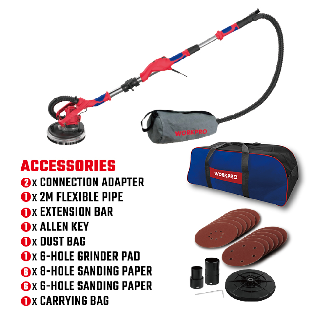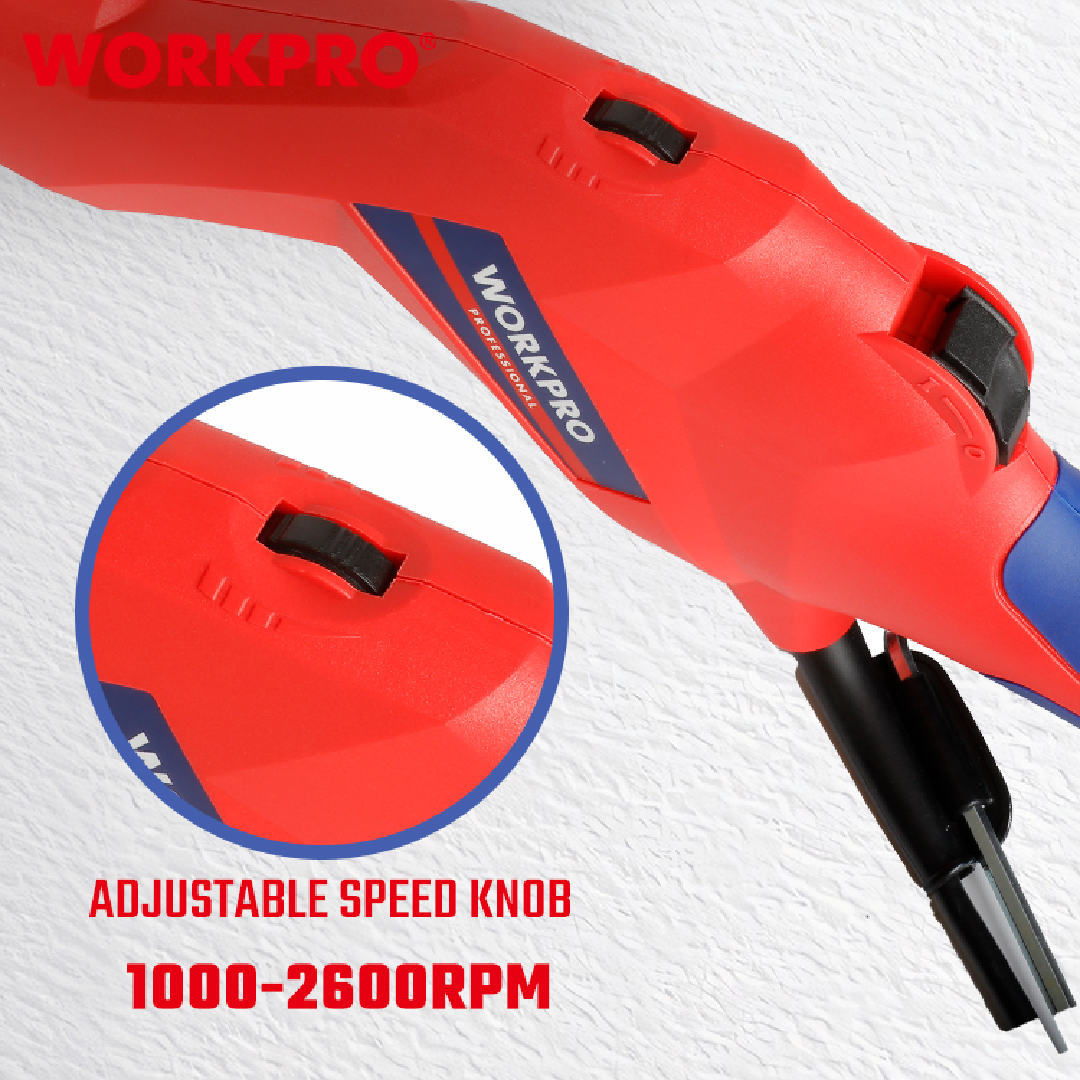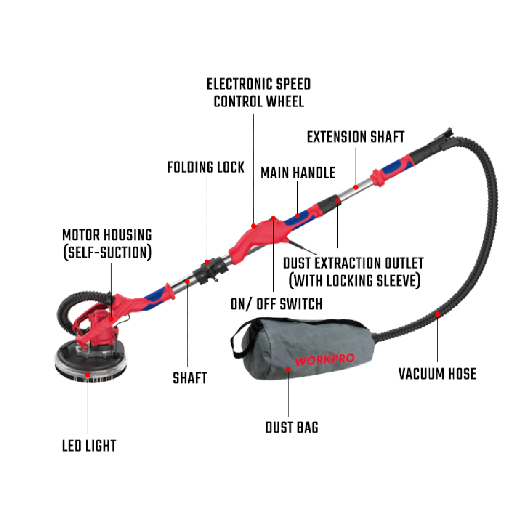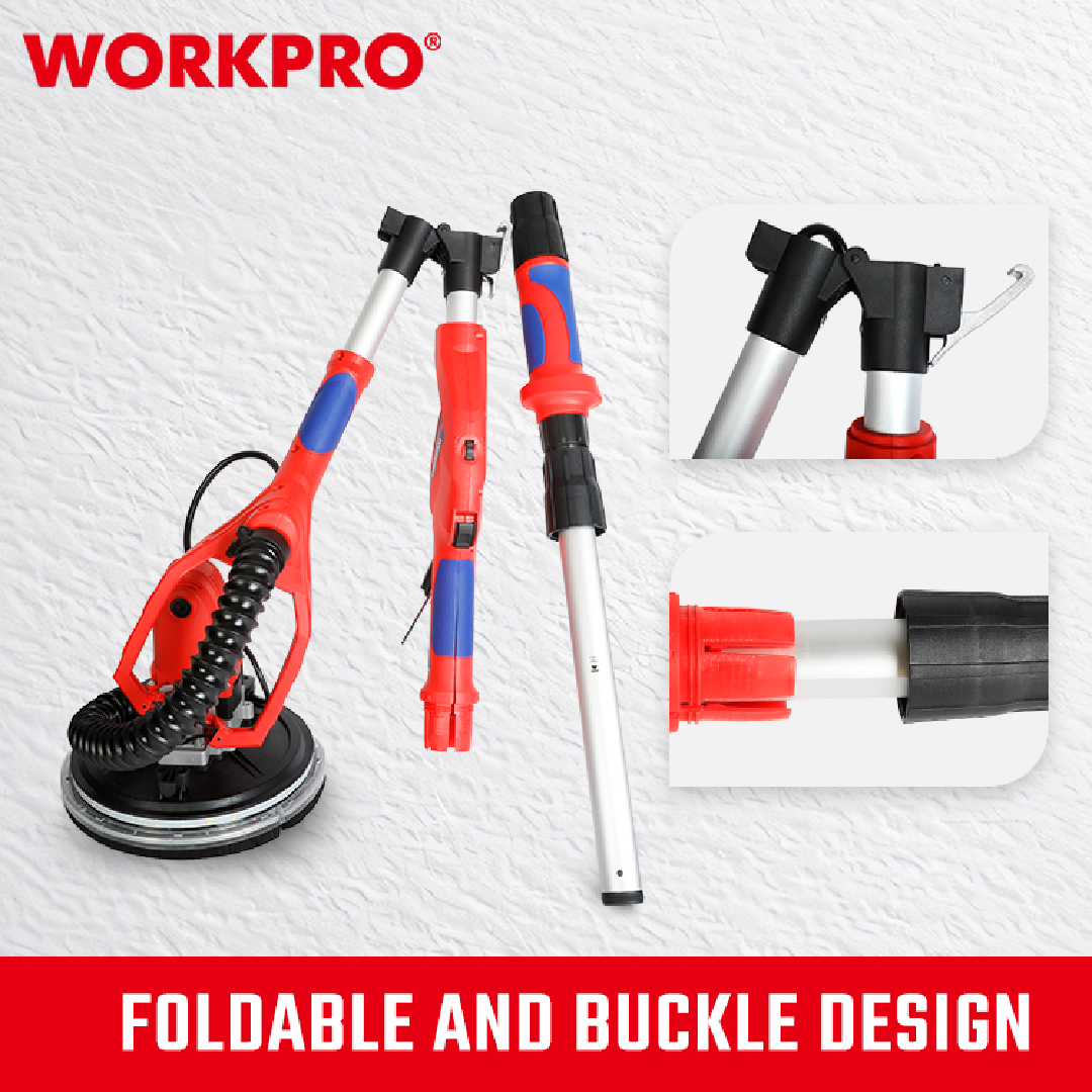 صنفرة جبس كهربائية من WORKPRO موديل WP472408 بقوة عالية تبلغ حوالي 1050 واط، بقرص صنفرة بمقاس 215 مم، مصممة لتغطية مساحات واسعة بسلاسة وكفاءة. مناسبة لتشطيبات الجدران والأسقف، وتوفر أداءً قويًا مع إمكانية التحكم بالسرعة لملاءمة مختلف مراحل الصنفرة.