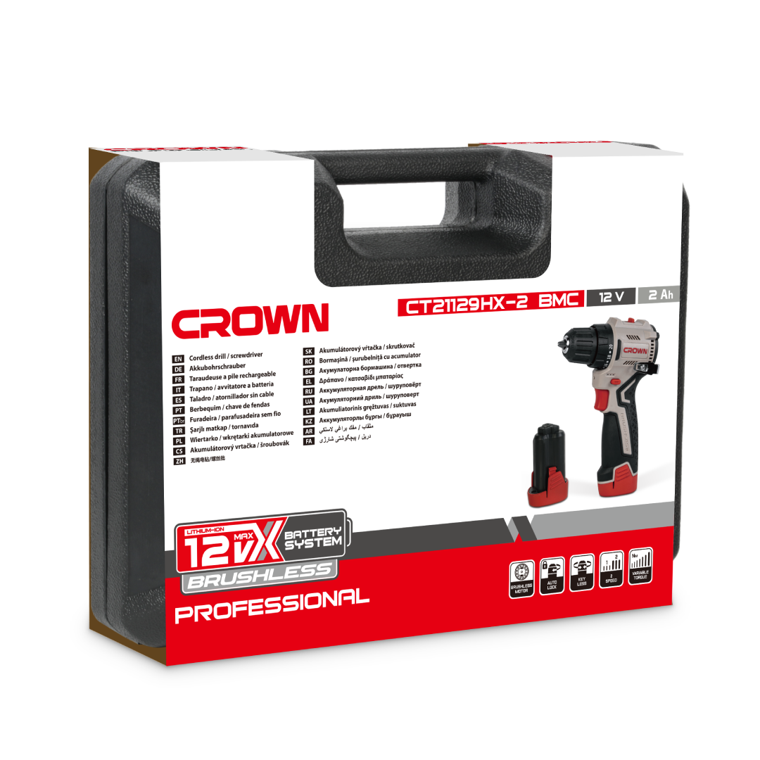 درل شحن 10مم 12 فولت بطاريتين جوزة حديد كراون CT21129HX-2