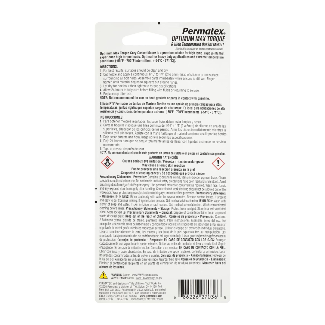 سيليكون كسكيت 700 درجة – رمادي – Permatex Optimum Grey 3oz