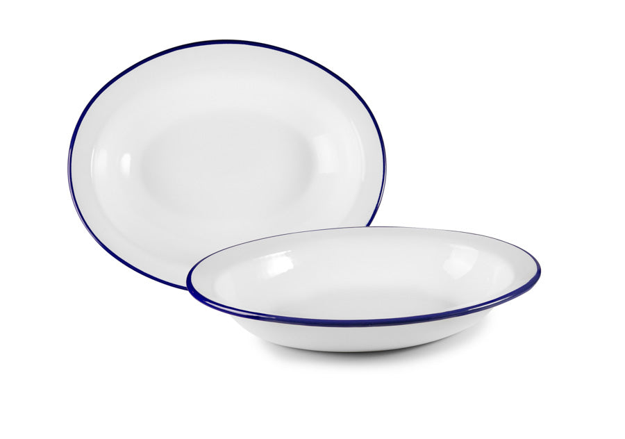 طبق بيضوي 32*25 سم من Ibili Blanca - أبيض وأزرق