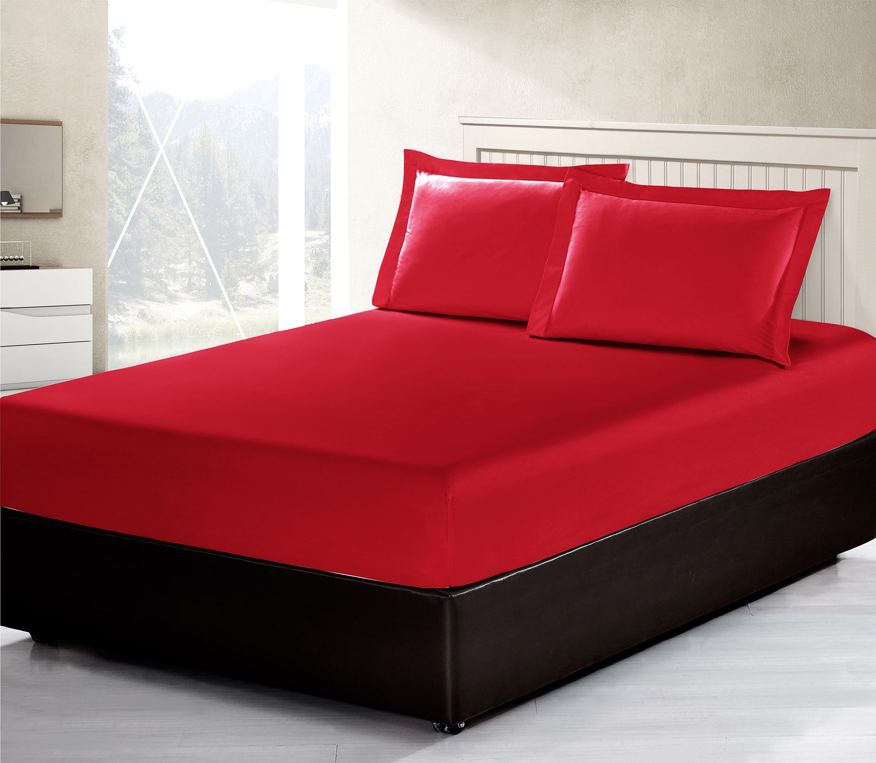 اسم المنتج بالإنجليزي: ARMN Vero 3-Piece Queen-size Fitted Sheet Set - Dark Red