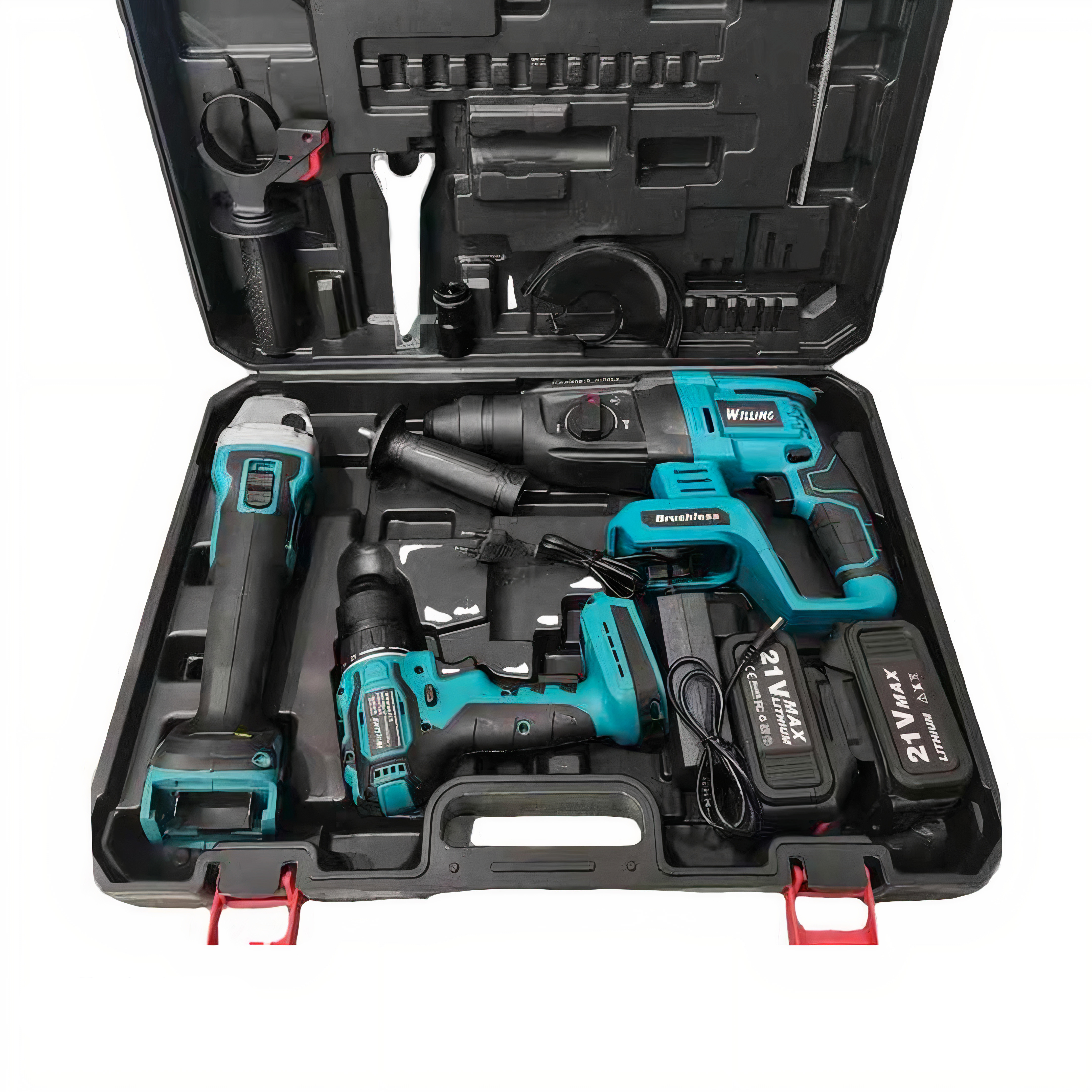 مجموعة أدوات لاسلكية ، مثقاب كهربائي ، مثقاب مطرقة ، مطحنة زاوية