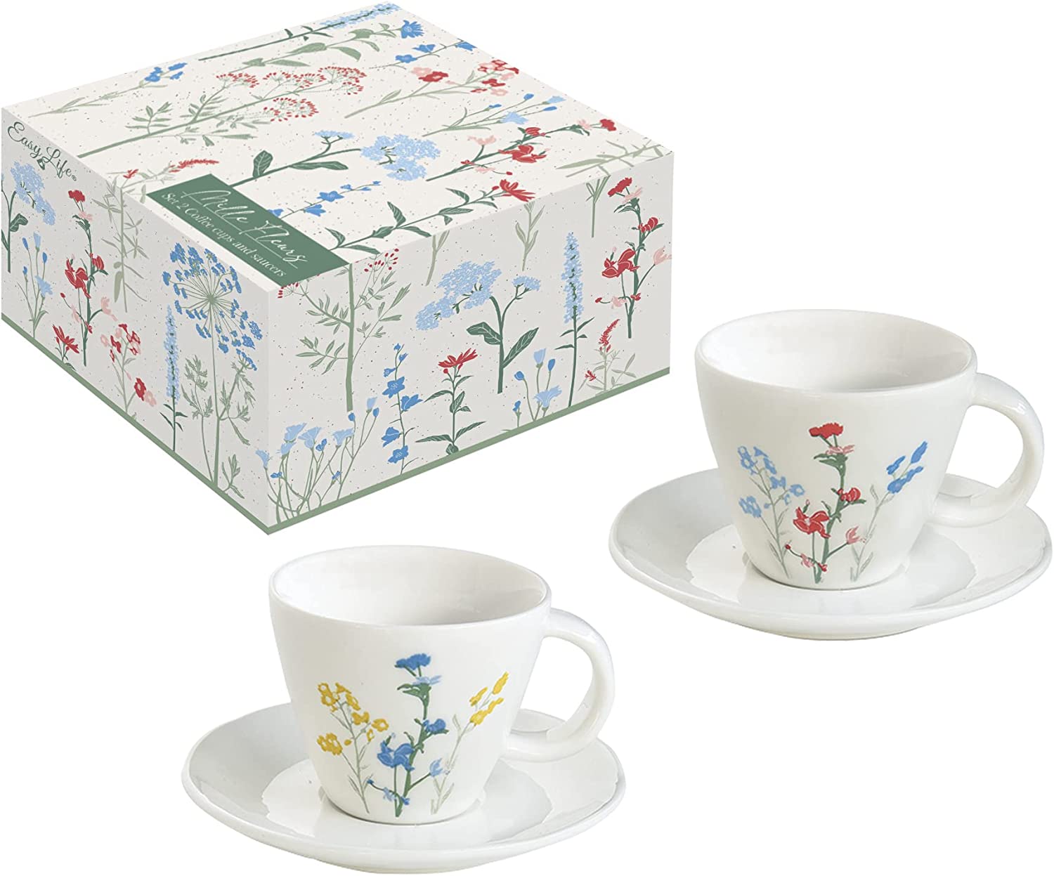 طقم فناجين قهوة 4 قطع 120 مل من Easy Life Mille Fleurs - ألوان متعددة