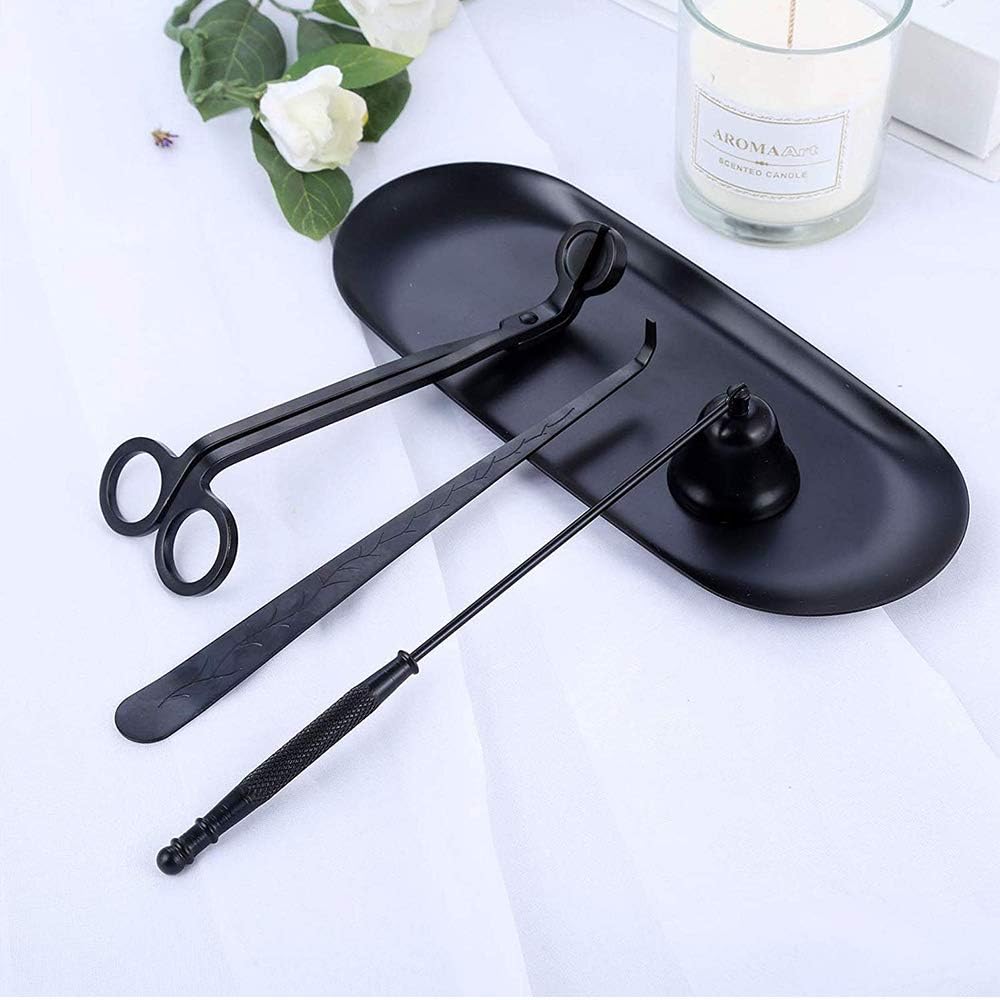 • الطقم مكون من: مقص فتيلة الشمعة، طفاية شموع، أداة تعديل فتيلة الشمعة، صينية