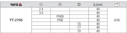 قياسات المفكات المصلبة PH 00,PH 0,PH 1