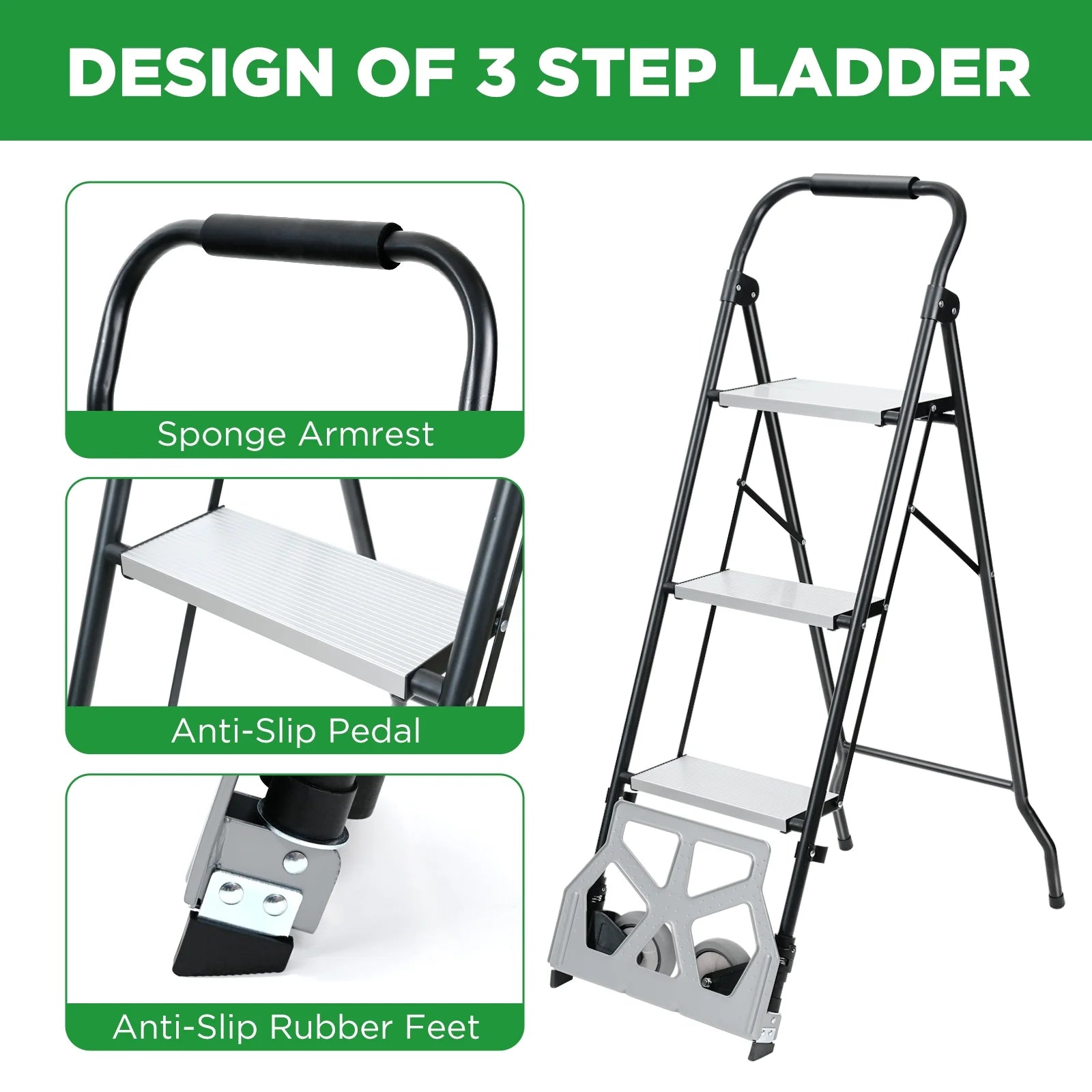 مزوّد بمقبض مريح ودرجات واسعة، مما يجعله أداة أساسية وعملية في المنازل والمستودعات.