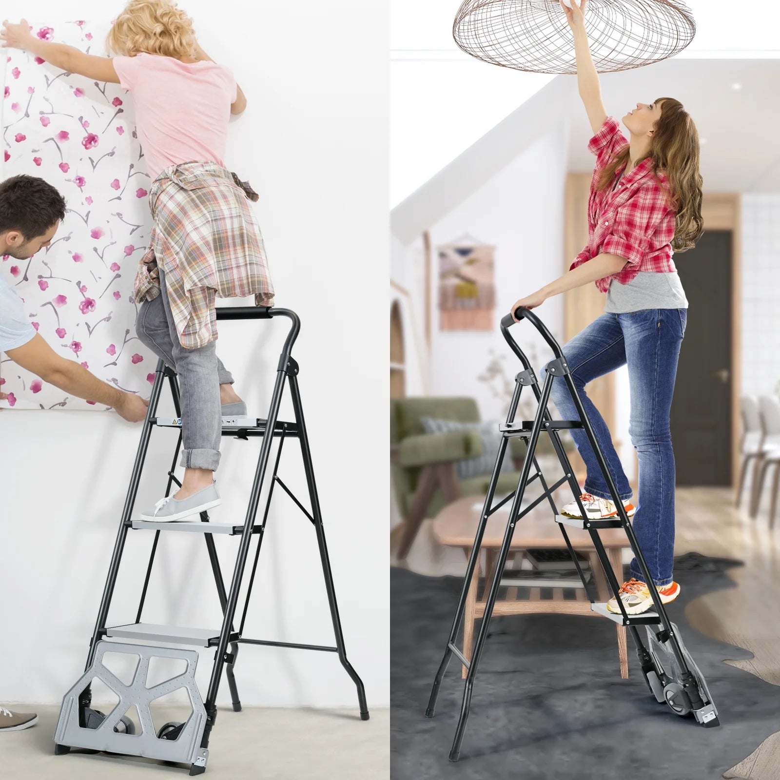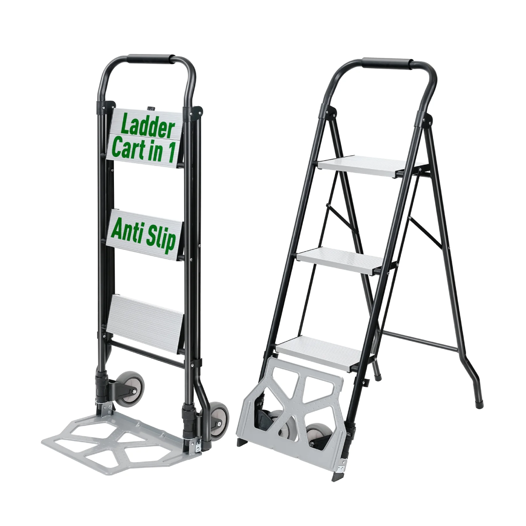 أداة متعددة الاستخدامات تجمع بين سلّم 3 درجات قوي وعربة نقل يدوي متينة، مصممة لتناسب الأعمال المنزلية والمستودعات والمحال التجارية. بفضل تصميمها الذكي وبنيتها الصلبة، تمنحك أداءً ممتازاً وسهولة في الاستخدام والنقل.