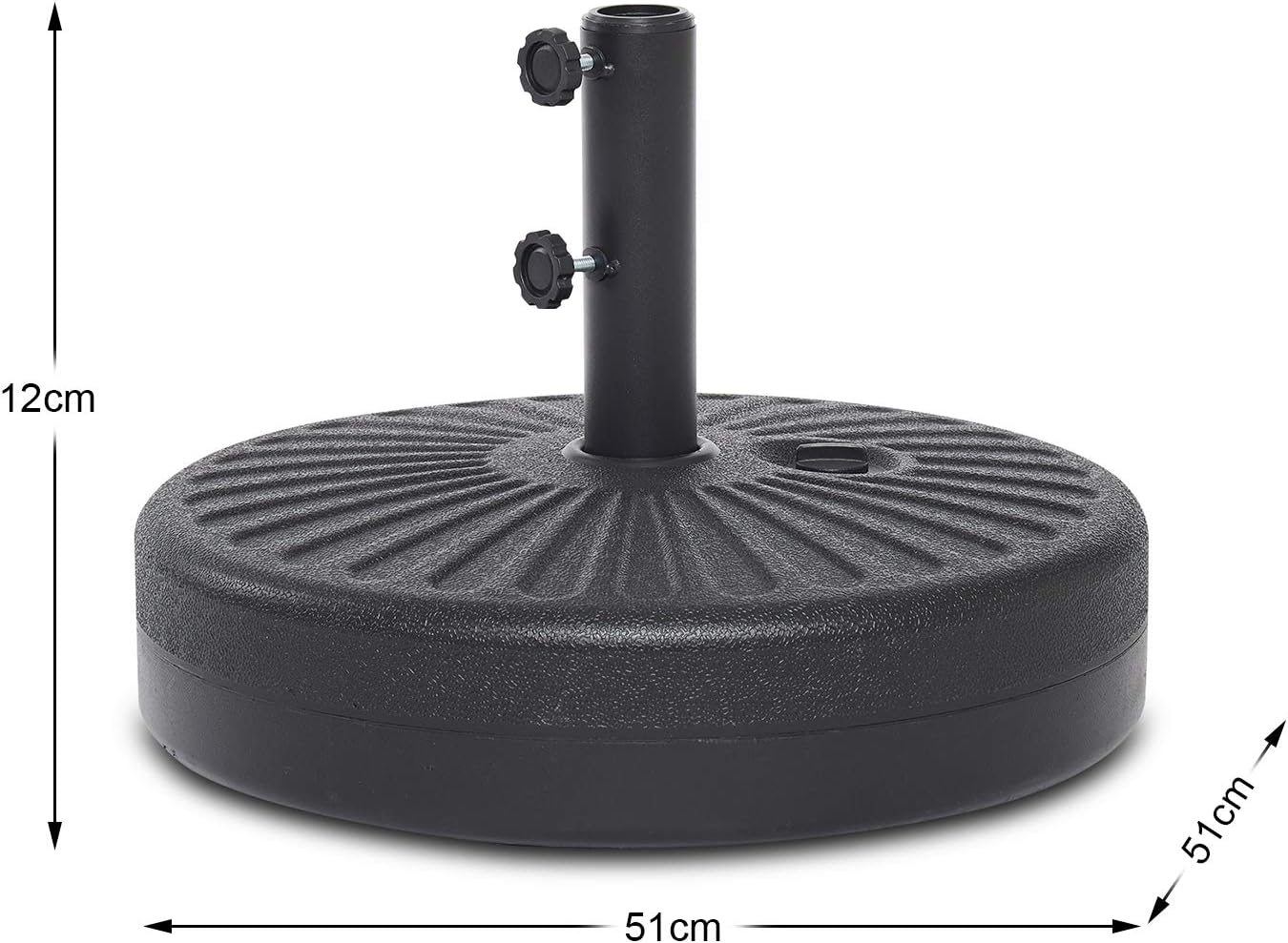 توافق مرن مع أعمدة المظلات: تأتي القاعدة بقياس 51 × 51 × 35 سم، مع فتحة دائرية تناسب أعمدة المظلات بقطر 38 مم أو 48 مم لتوفير تثبيت آمن.