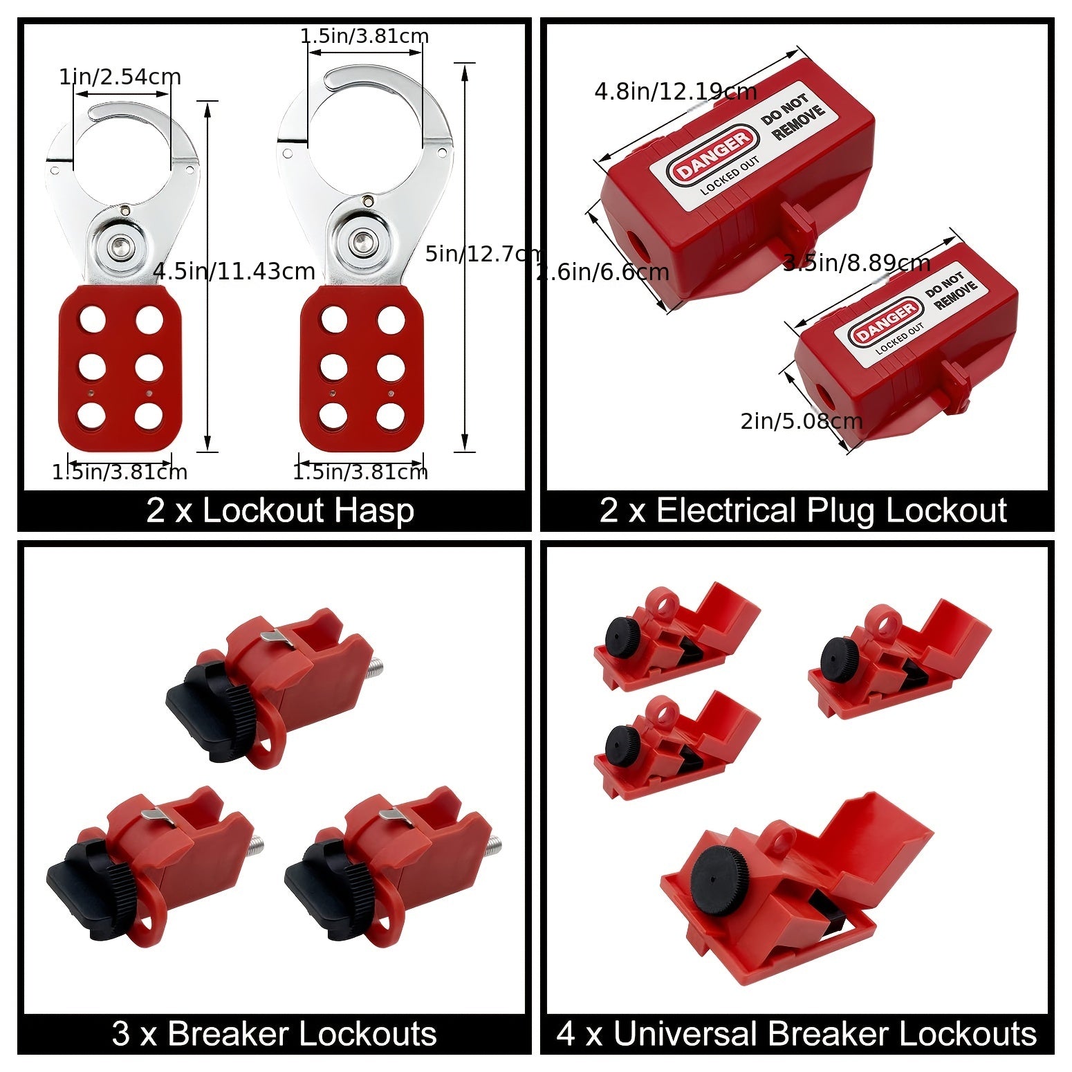 تتضمن المجموعة قفل قاطع دائرة بالمشبك، قفل مجموعة (Hasp) لدعم القفل الجماعي، علامة قفل تحذيرية، بالإضافة إلى قفل قاطع متعدد الأقطاب عالمي متوافق مع معظم القواطع الكهربائية. تأتي المجموعة مع حقيبة جيب عملية تسهّل الحمل والتنظيم أثناء العمل الميداني.