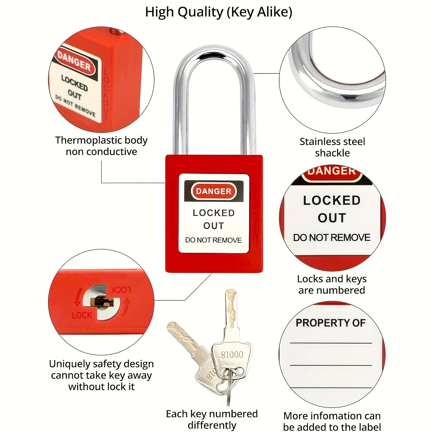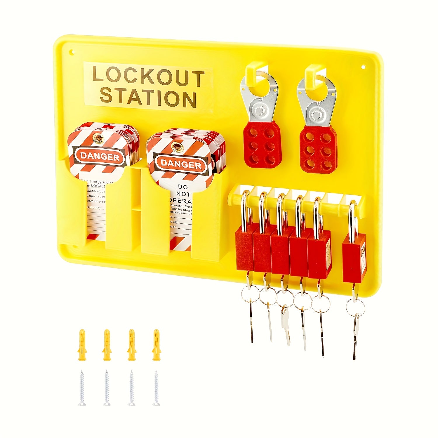 تتضمن المجموعة محطة قفل واحدة لتنظيم الأدوات، و6 أقفال أمان، و2 مزلاج (Hasps) لدعم القفل الجماعي، بالإضافة إلى 32 بطاقة تحذيرية قابلة للكتابة لتوضيح حالة المعدات، و20 رباطًا بلاستيكيًا لتثبيت البطاقات أو الأقفال عند الحاجة. صُممت المجموعة لتناسب مفاتيح ومصادر طاقة مختلفة، ما يجعلها مرنة وسهلة التطبيق في مختلف الأنظمة.