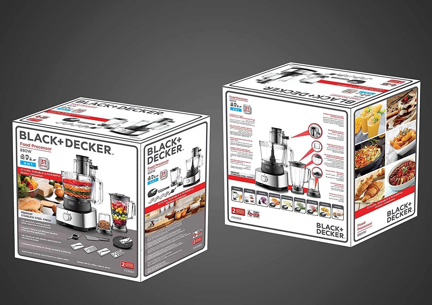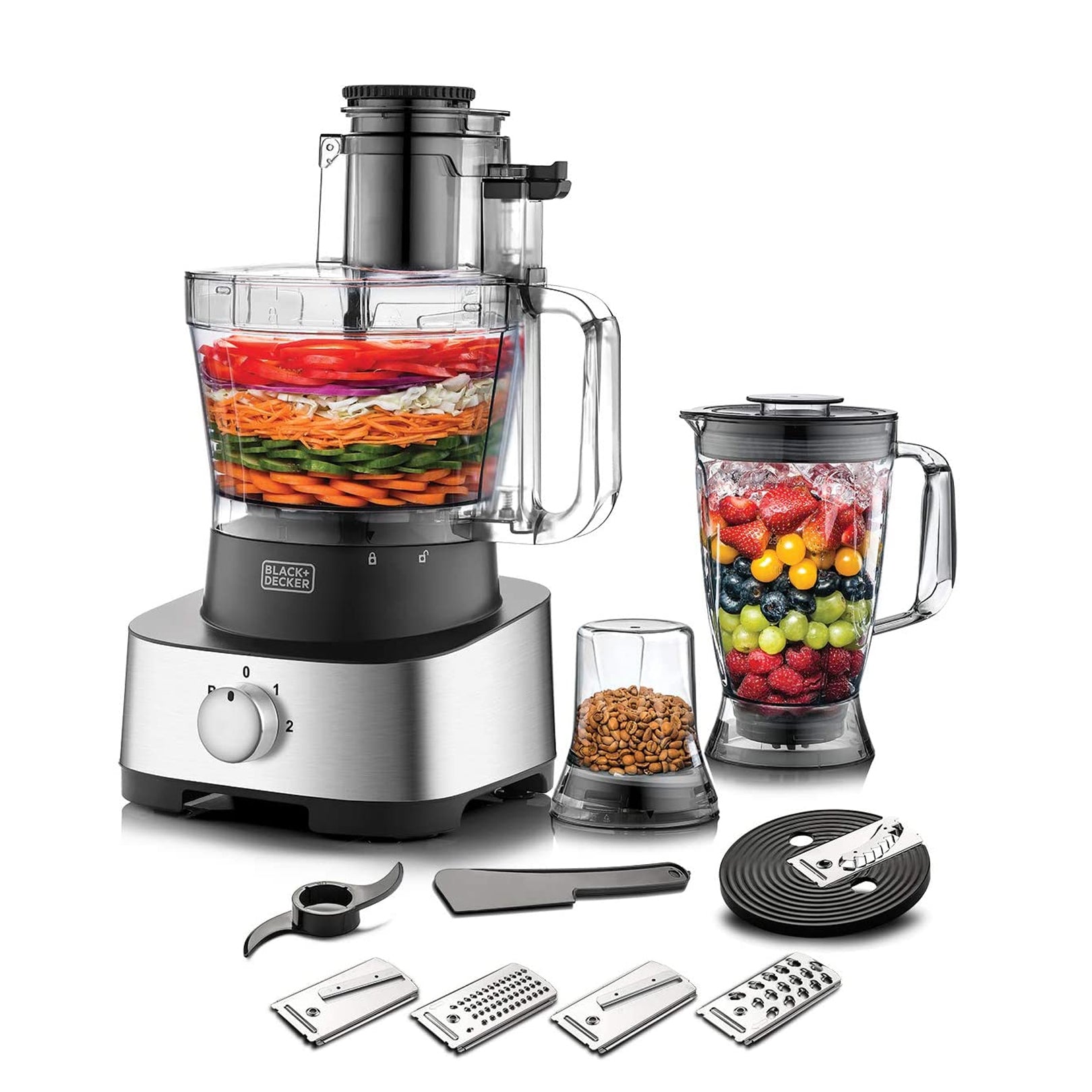 محضر الطعام بلاك اند ديكر 4 في 1، 880 واط، تتكون من خلاط ومطحنة وعجانة، 31 وظيفة، فضي/اسود