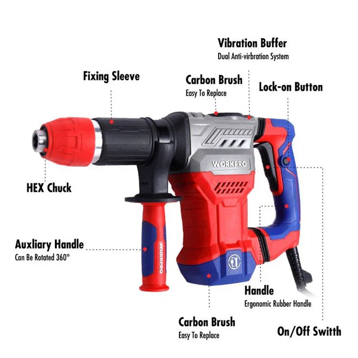 درل هدم WORKPRO WP470600 شديدة التحمل، مصممة لمهام البناء والتجديد الشاقة. بمحركها القوي بقوة 1300 واط وطاقة صدمات 15 جول،... Read more