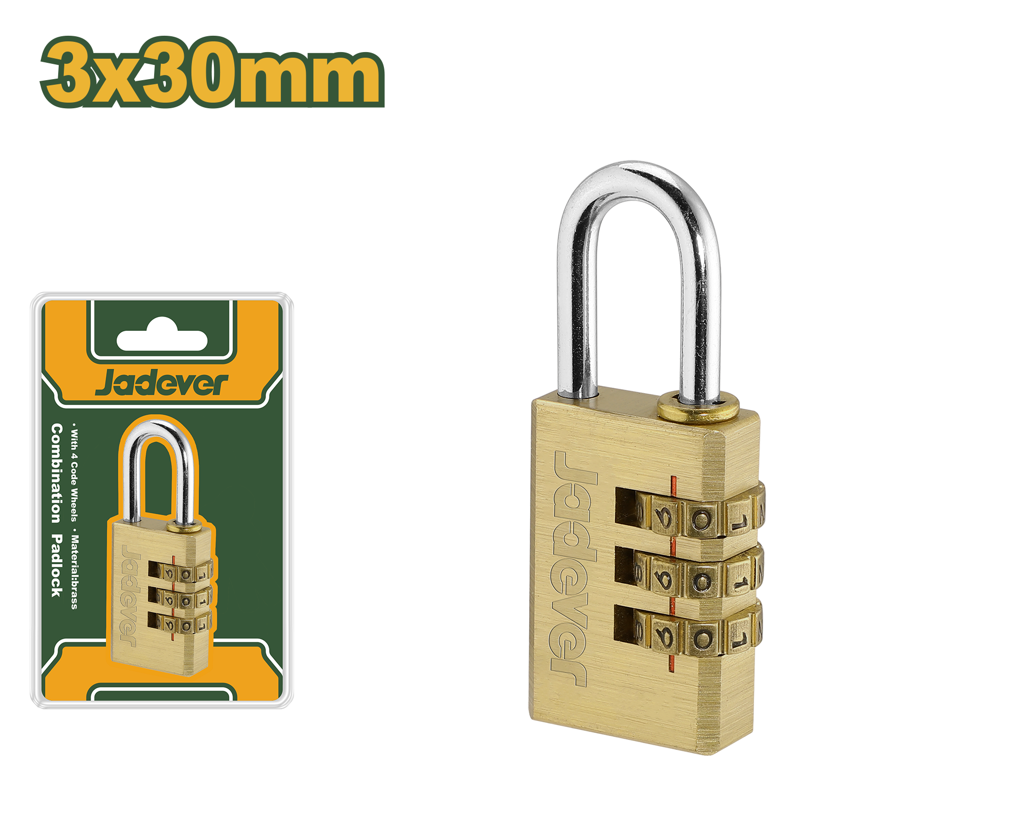 اسم المنتج بالعربي: قفل نحاس أرقام 30 ملم 3 خانات من جادايفر JADEVER