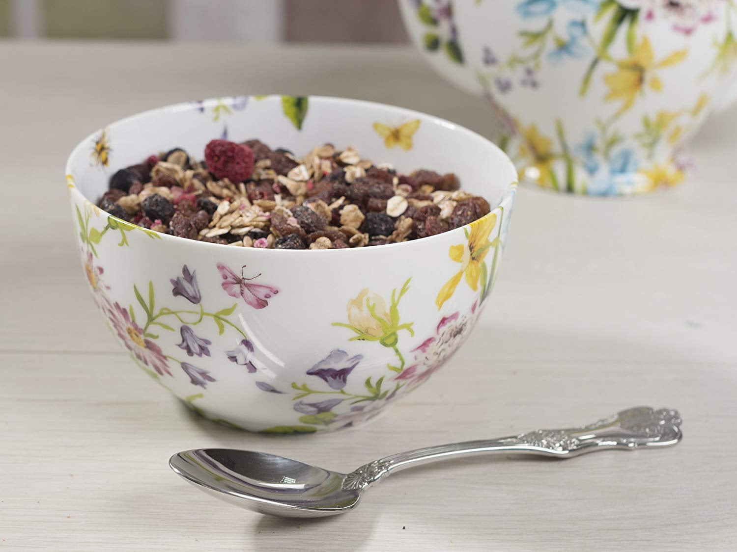 Want to add a touch of vintage shabby chic charm to your table. This lovely porcelain cereal bowl features the Katie Alice Cottage Flower design, bringing the natural vibrancy of the outdoors inside.