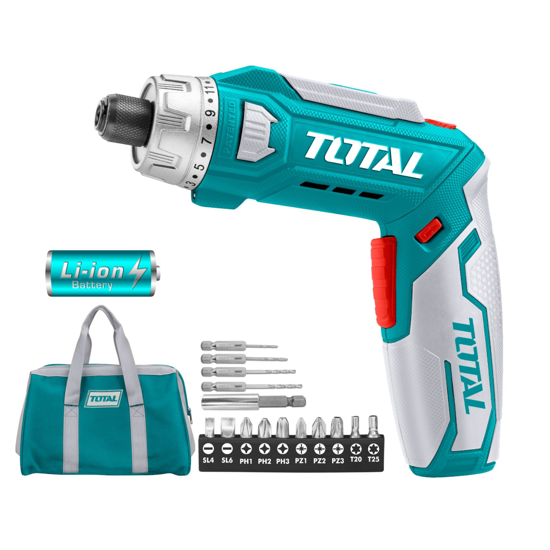 الاسم باللغة الإنجليزية: TOTAL TSDLI0802 8-Volt Cordless Screwdriver with 17-Piece Bit Set and Bag