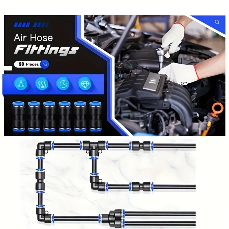 مجموعة توصيل الهواء السريع الإصدار المكونة من 90 قطعة هي حل عملي وشامل لتوصيل وفصل أنظمة الهواء المضغوط بسرعة وسهولة. صُممت لتكون عالمية التوافق مع الأنابيب بمقاسات 4، 6، 8، 10، و12 مم، ما يجعلها مناسبة لمجموعة واسعة من التطبيقات الصناعية والورش.