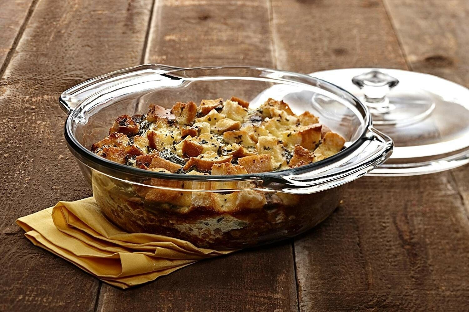 طبق زجاج دائري سعة 2 لتر مع غطاء من مرساة