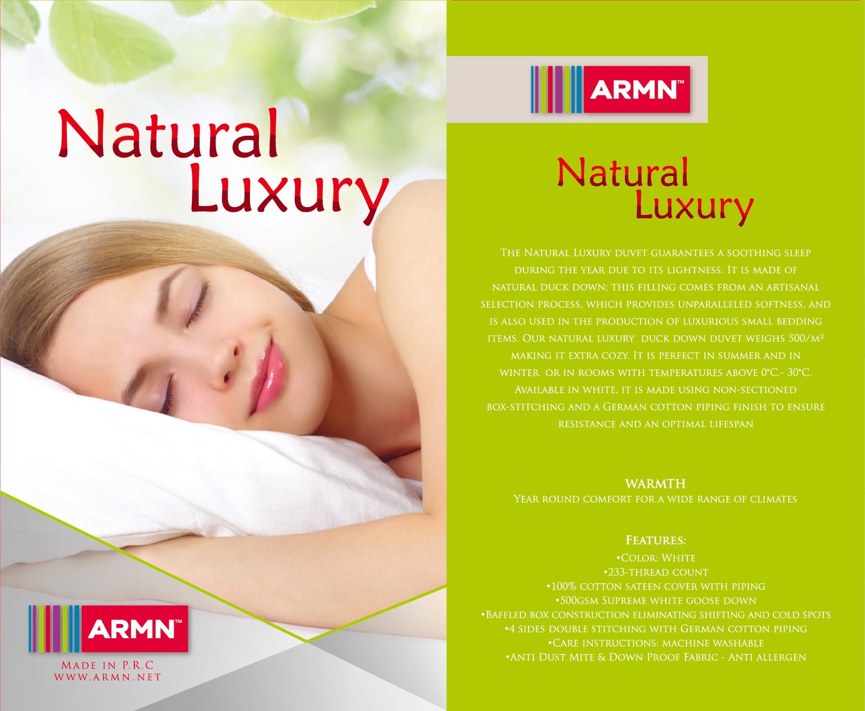 اسم الماركة: ARMN المجموعة: Natural Luxury مادة الصنع: - الغطاء: 100% قطن - الحشوة: 15% زغب بط، 85% ريش بط... قراءة المزيد