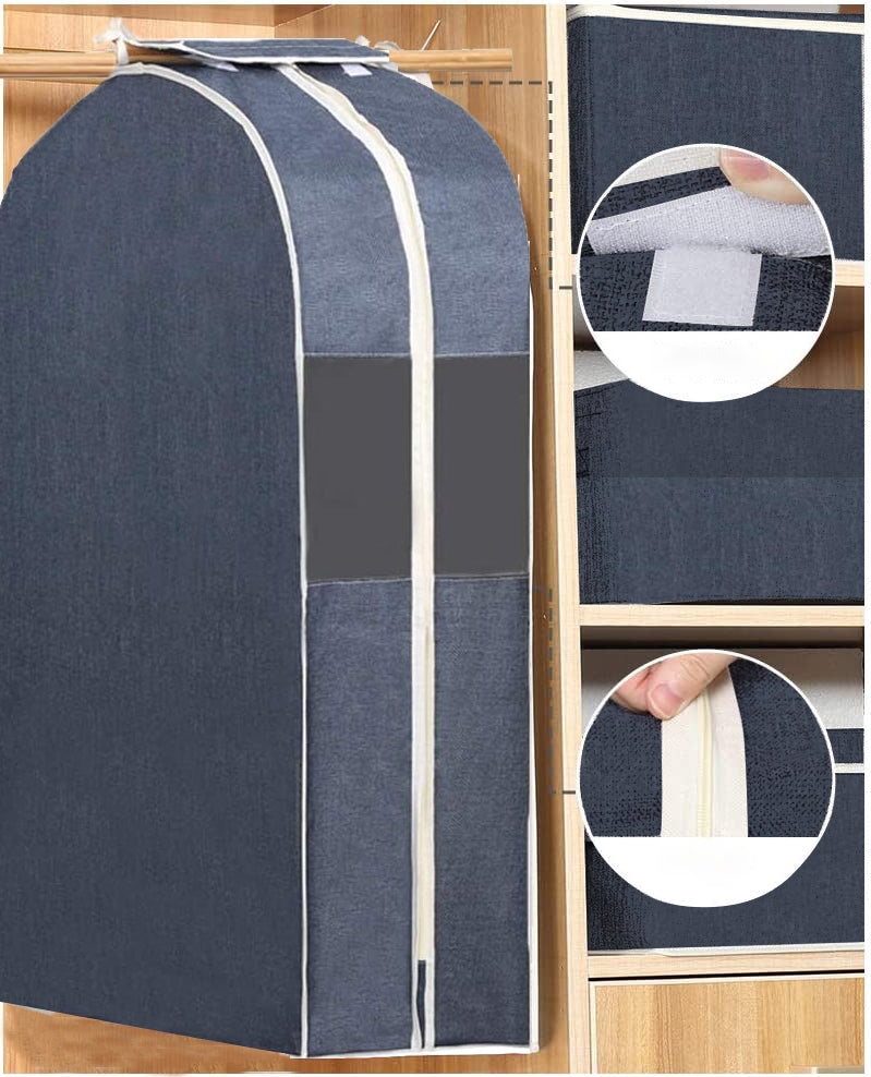 حقيبة تخزين الملابس TidyFold من ARMN باللون الأزرق الداكن هي حل تنظيمي متين وقابل للغسيل مصنوع من القطن والكتان المقوى. توفر الحقيبة حماية $360^{\circ}$ مقاومة للغبار والحشرات، وتتميز بوجود نافذة PVC شفافة وسحابات طويلة، مما يجعلها مثالية لتخزين وتنظيم المعاطف والفساتين والقمصان دون عناء.