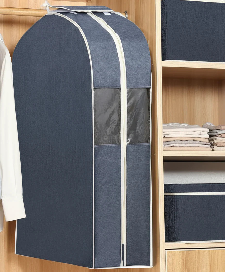 نافذة شفافة: جهة مغطاة بمادة الـ PVC لتسهيل رؤية الملابس داخل الحقيبة دون فتحها.