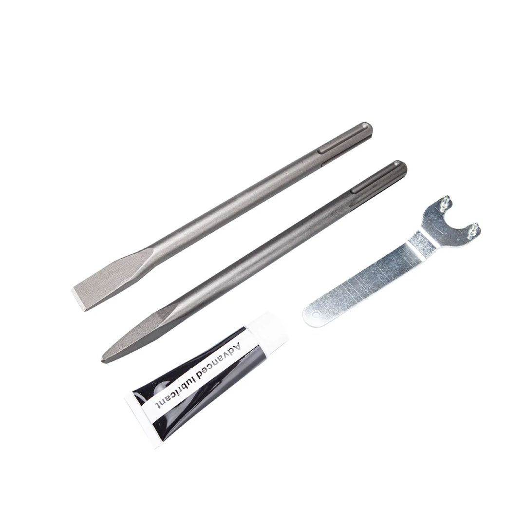 One point chisel,one flat chisel and one bottle of oil included.