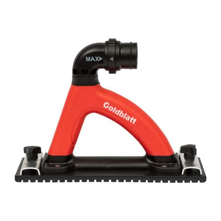 تم تصميم حفافة الصنفرة اليدوية الخالية من الغبار من Goldblatt لتقليل الغبار أثناء مهام صنفرة الحوائط الجافة. تتميز بمرفق دوار بزاوية 360 درجة لسهولة الاستخدام على الأسطح الرأسية وفتحة تهوية قابلة للتعديل لقوة شفط متغيرة. تتضمن ماكينة الصنفرة خرطومًا بطول 6 أقدام ووصلة ومحولًا للتوافق مع معظم المكانس الكهربائية من النوع المستخدم في المتاجر. وهي مصممة للاستخدام مع صفائح شاشة الصنفرة القياسية المقطوعة بالقالب مقاس 11¼ بوصة.
