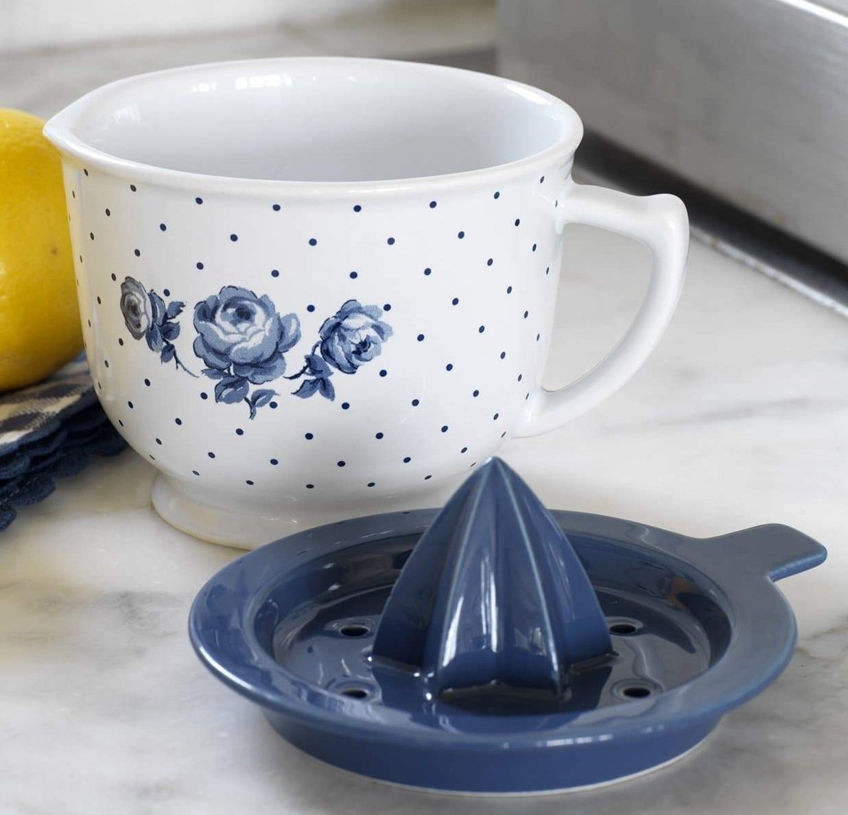 KATIE ALICE VINTAGE INDIGO CERAMIC LEMON JUICER WITH JUG