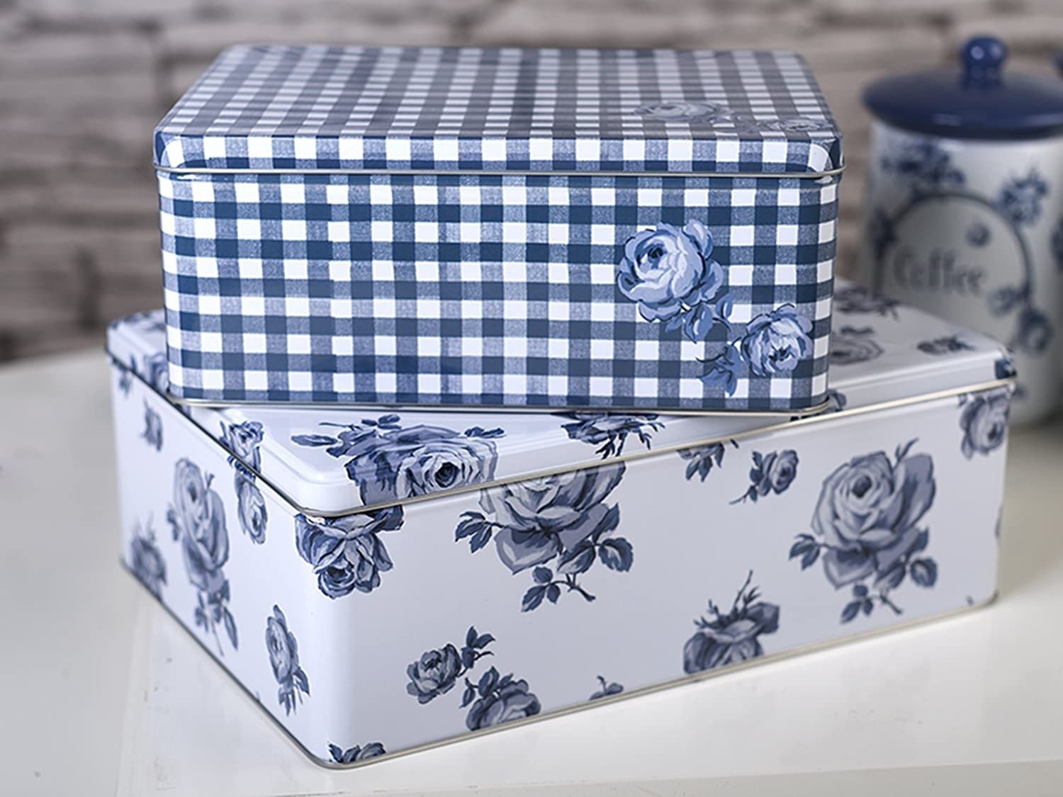 2-piece stylish kitchen storage tins with vintage indigo blue floral and woven gingham from the katie alice vintage indigo collection... Read more