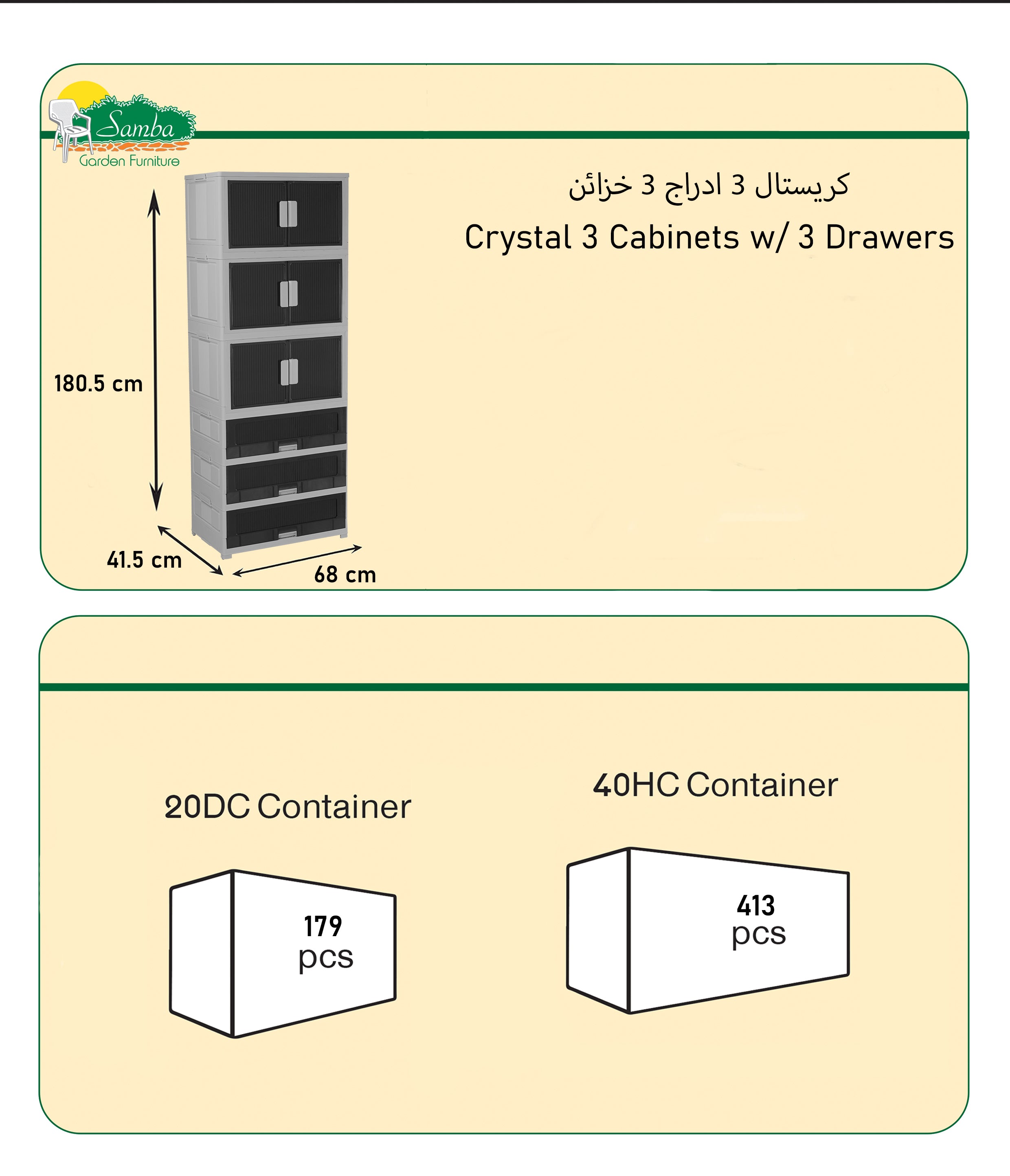 خزانة كريستال (3 أبواب + 3 أدراج)- حل لتخزين عملي من سامبا