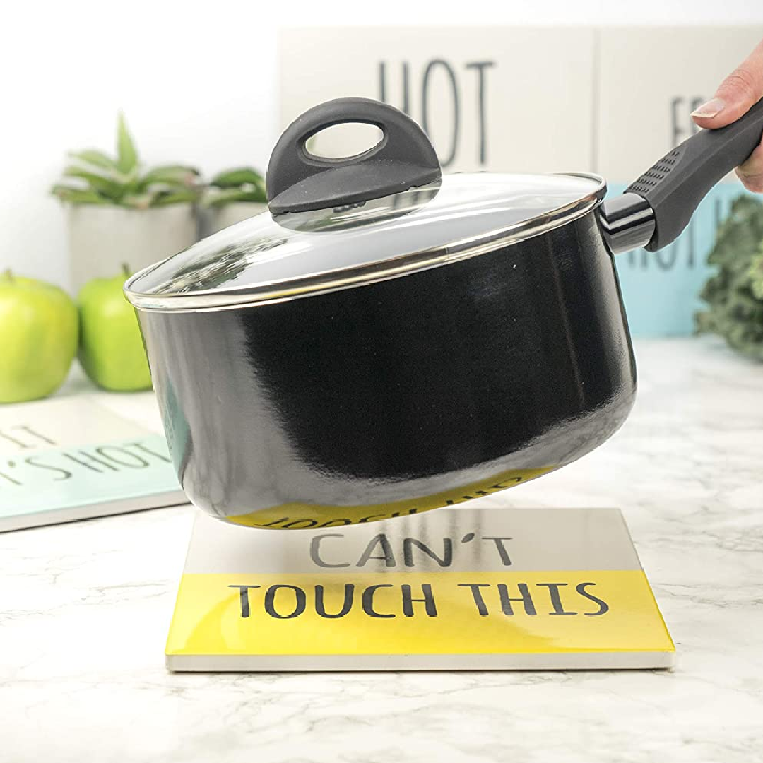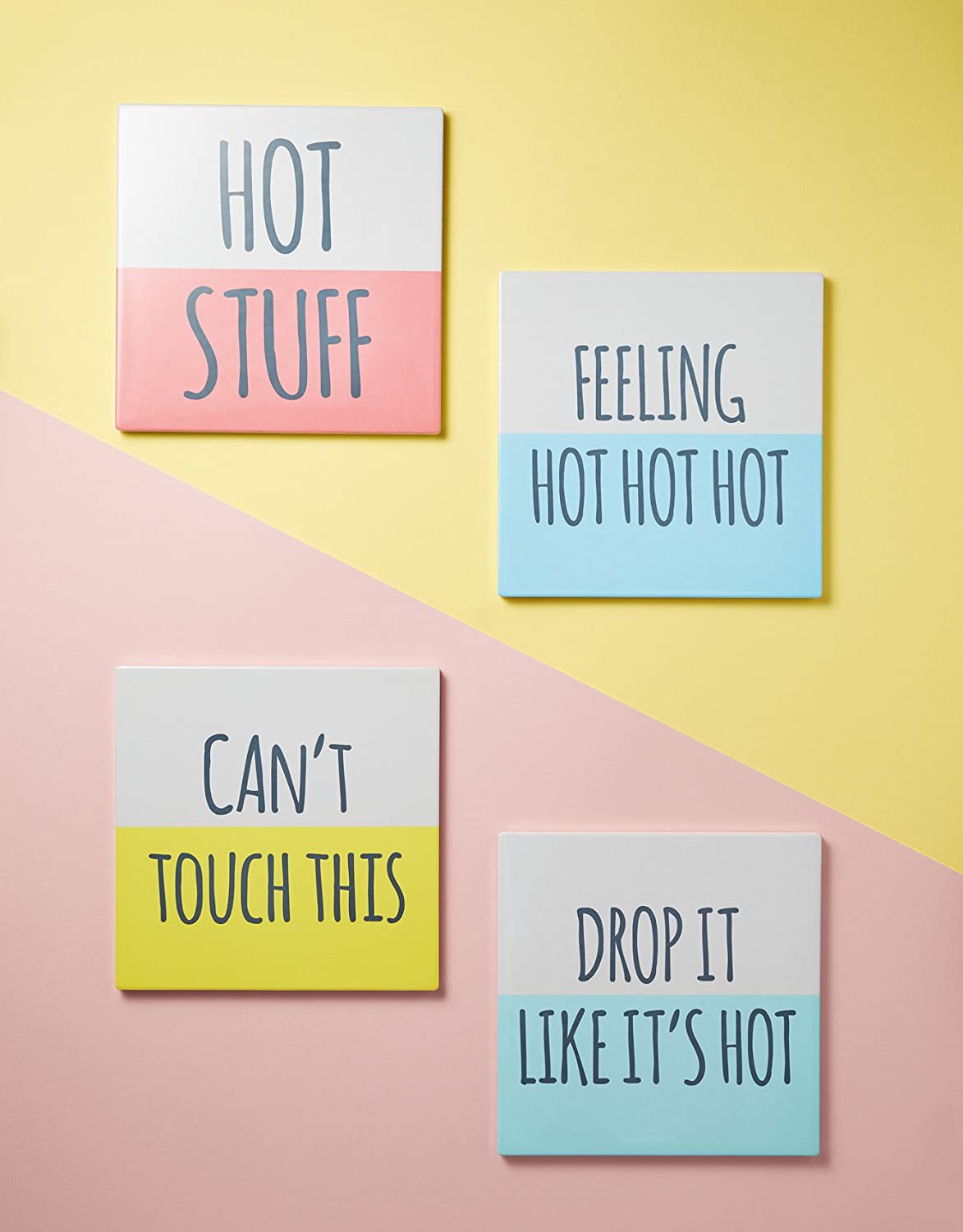 KitchenCraft kctrivctt Funny Can 't Touch This Ceramic Coaster Square [Query] 20 x 20 cm (20.3 cm), Yellow/White