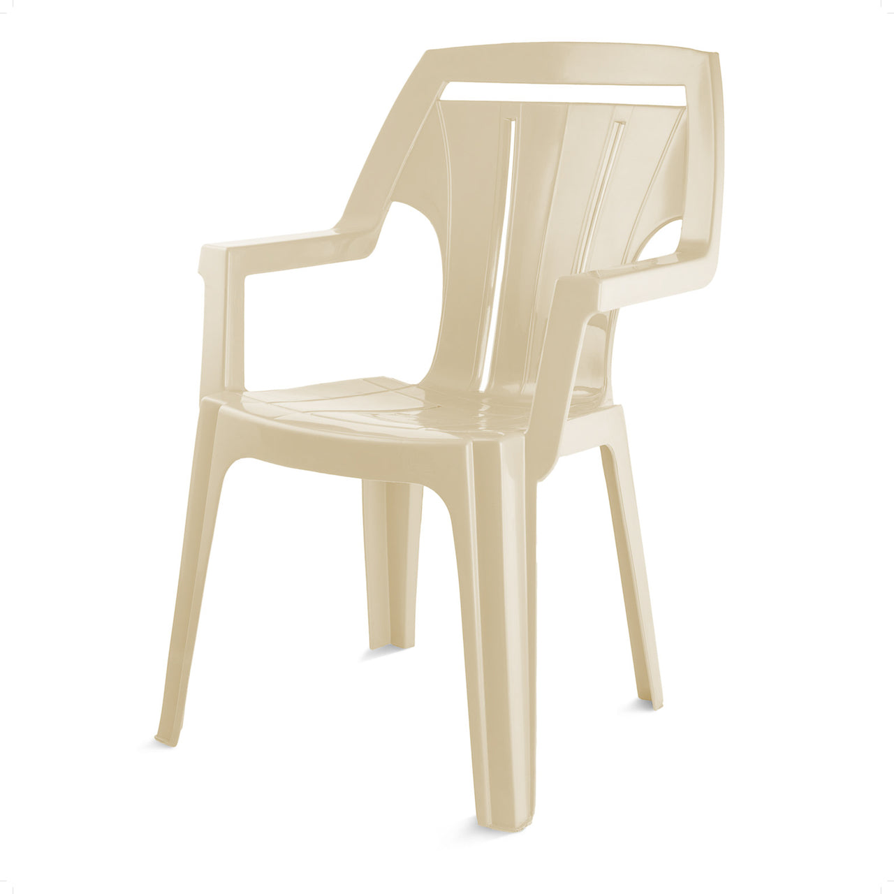 • كرسي بلاستيك بذراعين، مثالي للاستخدام الداخلي والخارجي.