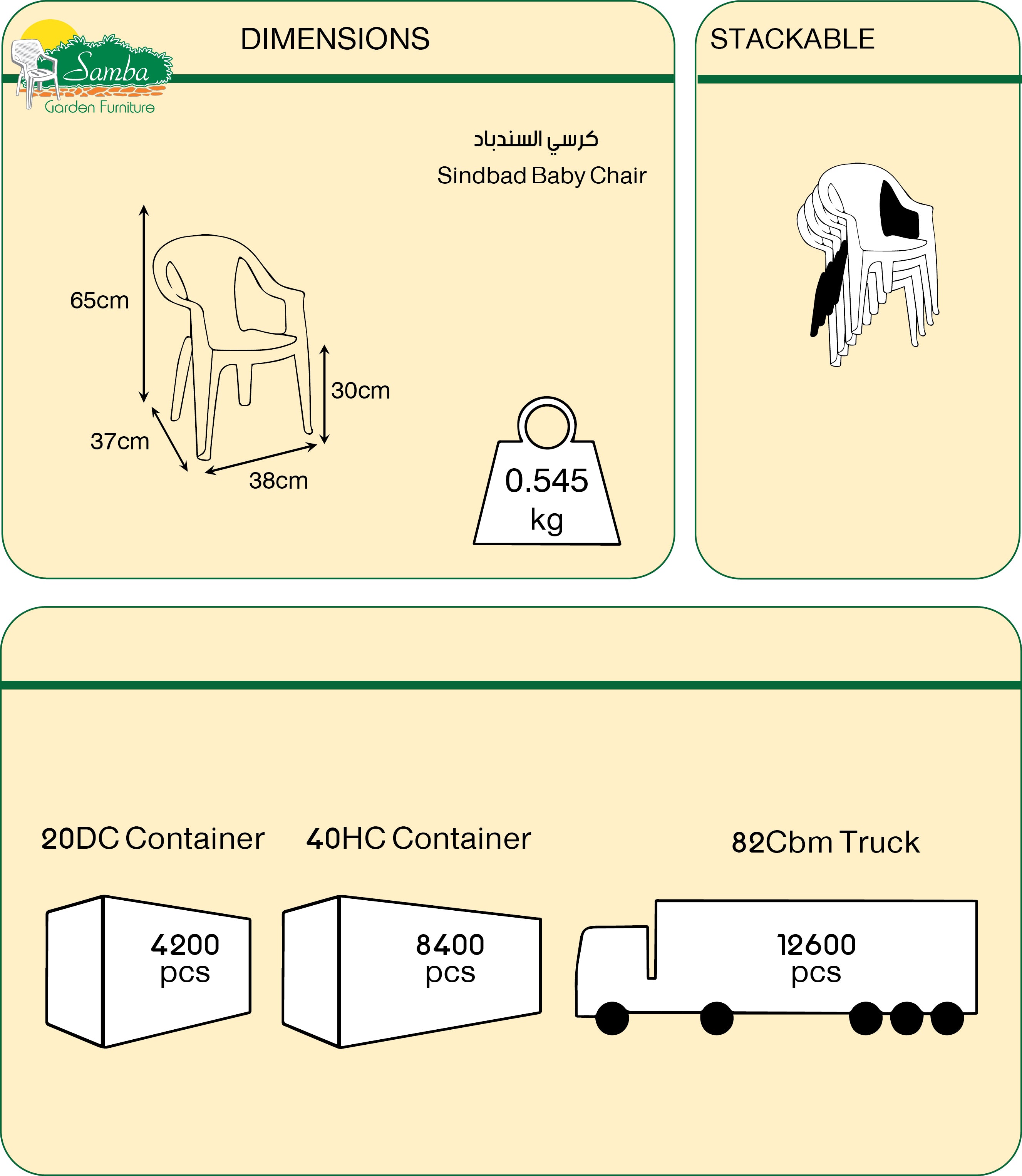 شرح موجز للخواص العامة: كرسي اطفال سندباد من سامبا هو الخيار الأمثل لجعل بيئة الأطفال أكثر حيوية. يتميز بتصميمه المريح والألوان الجذابة مما يجعله إضافة رائعة لأي غرفة ألعاب. يناسب الكرسي جميع الأنشطة التعليمية والترفيهية.