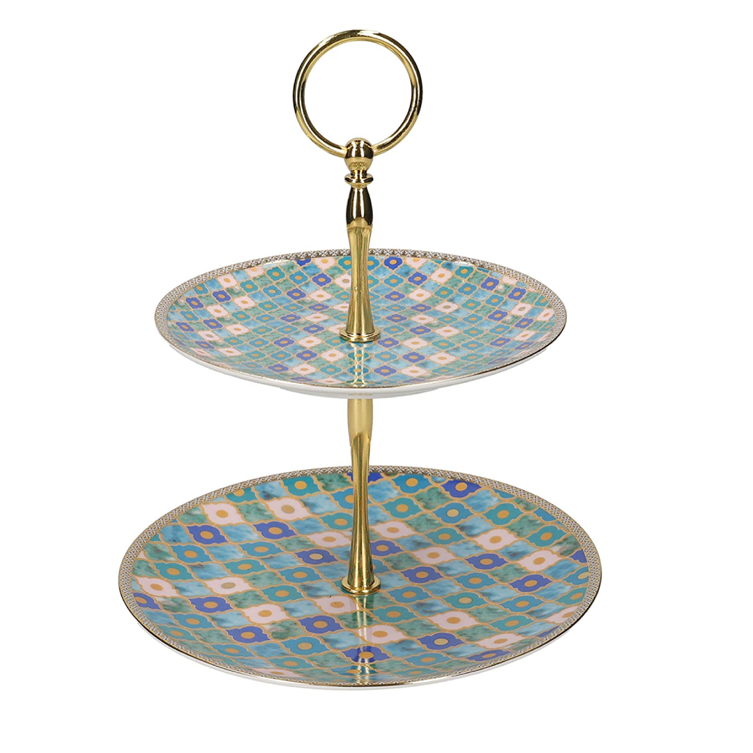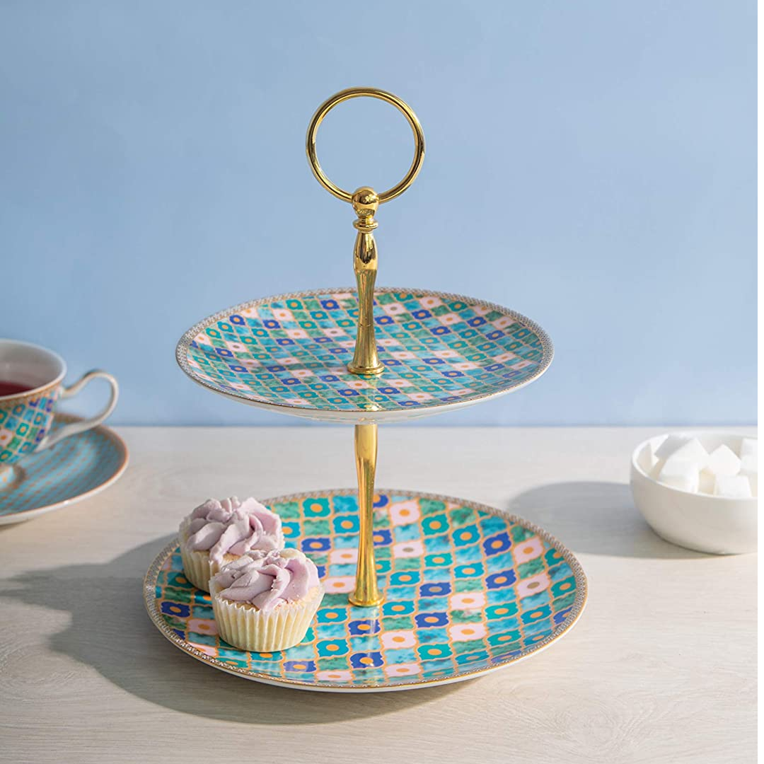 Maxwell & Williams HV0123 Teas & C’s Kasbah Cake Stand in Gift Box, Porcelain, Mint Green, 2 Tiers