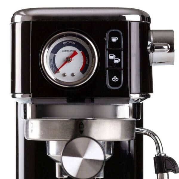 آلة اسبريسو Ariete Moderna Slim Blackاسم المنتج بالعربي: آلة اسبريسو Ariete Moderna Slim 1300W 1381 Blackاسم المنتج بالإنجليزي: Ariete Moderna Slim Espresso Machine 1300W 1381 BLKالماركة: Arieteالمجموعة: Modernaوصف المنتج والميزات:الطاقة والضغط: تعمل بطاقة 1300 واط وتوفر ضغطًا بقوة 15 بار لتحضير قهوة إسبريسو غنية ومثالية.تصميم رفيع: جسم نحيف ومدمج من الستانلس ستيل.مرونة التحضير: متوافقة مع القهوة المطحونة والكبسولات، مما يمنحك خيارات متعددة.نظام التسخين: تحتوي على نظام تسخين حراري (Thermoblock) يضمن تسخينًا سريعًا ومستقرًا للماء.التحكم والمراقبة: مزودة بميزان حرارة ومقياس ضغط، وأزرار معدنية مع 3 أضواء LED، وإمكانية حفظ إعدادات طول القهوة.وظائف إضافية: أنبوب للماء الساخن لتحضير الشاي، وأداة مخصصة لتحضير الكابتشينو، وصينية تقطير قابلة للإزالة.الملحقات: تأتي مع 3 فلاتر (لكوب واحد، كوبين، وللكبسولات)، بالإضافة إلى ملعقة وأداة تنظيف.تصميم ذكي: إمكانية تعديل ارتفاع الصينية الحاملة للأكواب وإيقاف تشغيل تلقائي بعد 25 دقيقة.المواصفات الفنية:القياسات: الارتفاع 29 × العرض 14 × العمق 34 سمسعة خزان الماء: 1.1 لترحامل الفلاتر: مصنوع من الألمنيوم الصب بمقبض من الباكليت.المنشأ: تم تصميمها في إيطاليا وصناعتها في الصين.شرح موجز للخواص العامة:تعد آلة اسبريسو Ariete Moderna Slim جهازًا أنيقًا وعصريًا يجمع بين الأداء الاحترافي والتصميم المدمج. بفضل ضغطها البالغ 15 بار ونظام التسخين السريع، تضمن لك كوب إسبريسو مثالي في كل مرة. كما توفر لك مرونة في الاستخدام بفضل توافقها مع القهوة المطحونة والكبسولات، مما يجعلها إضافة مثالية لمطبخك.