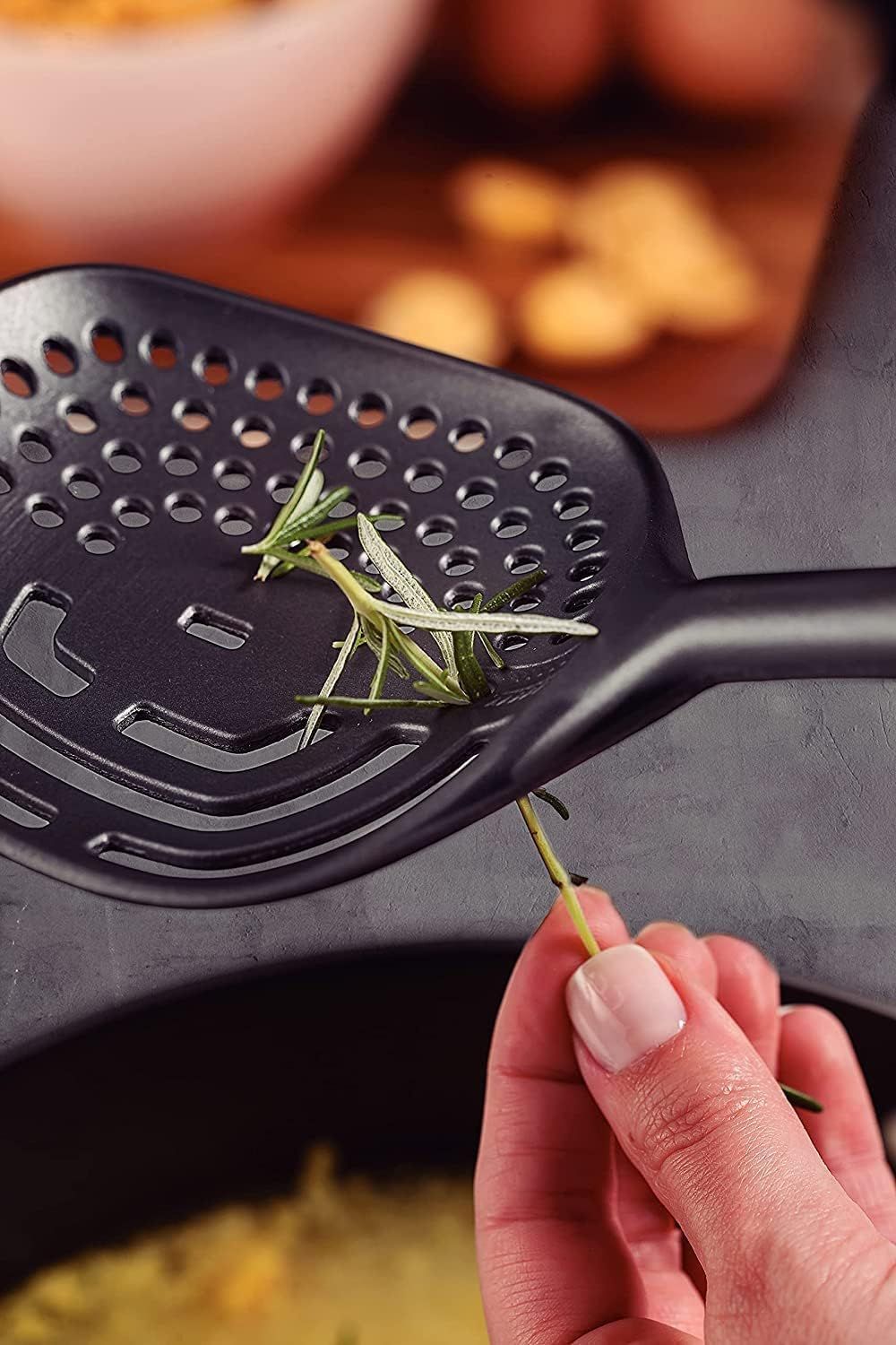 - تحتوي على فتحة لتصفية السوائل، مما يجعل من السهل استخدامها أثناء الطهي.