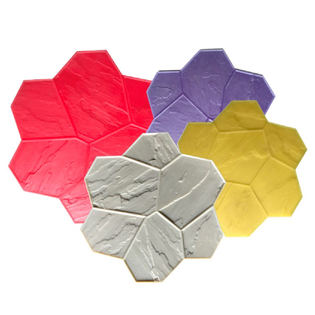 Concrete Stamp Mold 1901 Set Stamp size: 29" x 29" x 1/2" thick ( 74x74cm) approximately Set includes: 3 Rigid stamps with handles & 1 Floppy Stamp mat (w/o handles) Concrete stamps are used to stamp, imprint and texture newly poured concrete. See these different stamp patterns being stamped into concrete and get tips on how to properly used concrete stamps. Stamped concrete is more popular today than ever before. The main reasons is the availability of better concrete stamp mats and concrete texturing tools that produce very realistic results. Many people can't tell the difference between stamped concrete and pricier paving materials such as natural stone, slate, or brick. Concrete stamps are manufactured in hundreds of different patterns. Stamp patterns include brick, slate, flagstone, cobblestone, fieldstone, fan stone and many more. Patterns are commonly made to resemble stone yet these rubber stamps can also be made to resemble wood, rock salt finishes, broom finishes, fossils, or leaves. RIGID Stamps Mat These are the strong and solid built mat types and are firm enough to stand on. The RIGID Stamps Mat have handles for easy lifting and moving. The RIGID Stamps Mat is the firmest type and has zero flex. FLEX Stamp Mat The Flex Stamp Mat (floppy) is about half the thickness of a rigid mat and made with a more flexible urethane, so you can bend the mat to a 90-degree angle to conform to slab edges or walls. The Flex Stamp Mat doesn't have handles To protect and prolong the mold's life we recommend use these releases: GLOBMARBLE CONCRETE RELEASE FOR STAMPING MATS - 1 Gal SURERELEASE - STAMPED CONCRETE LIQUID RELEASE - 5 Gal Colored Powder Concrete Release Agent - 5 Gal