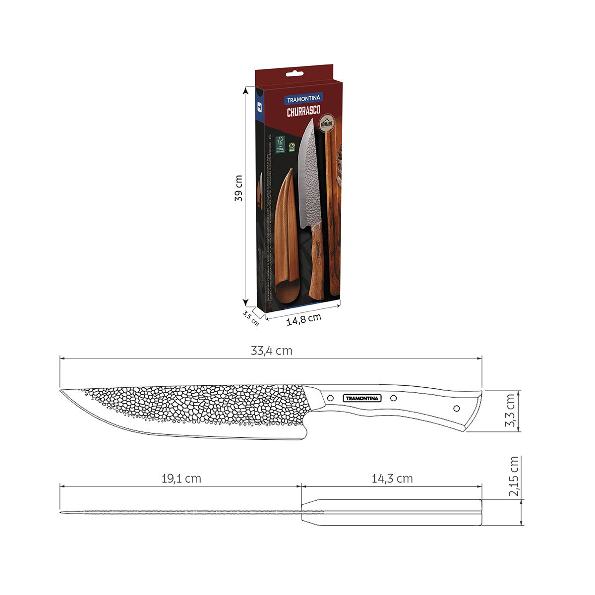 سكين لحوم 33 سم بغطاء من Tramontina Churrasco Nomade