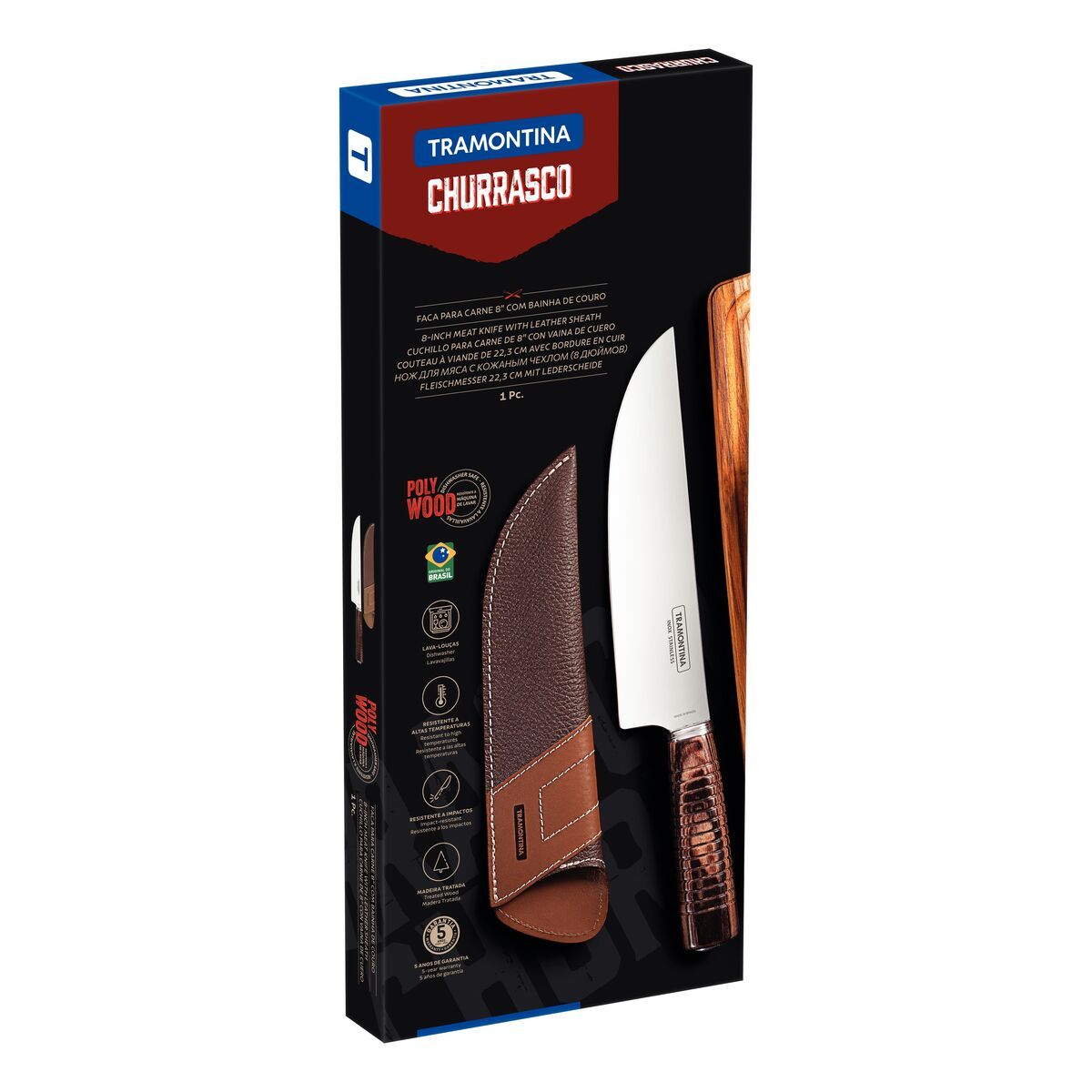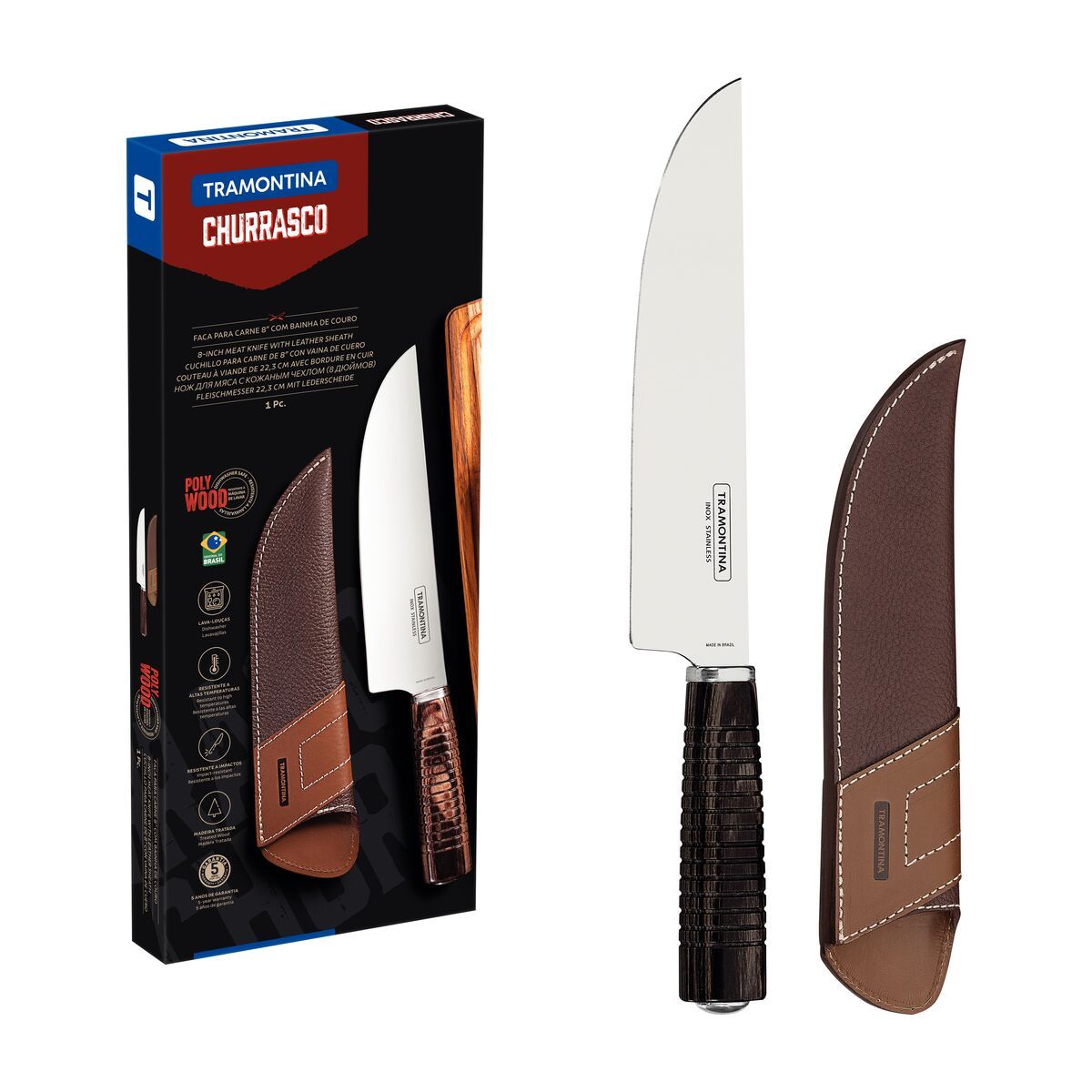 سكين تقطيع لحوم 20 سم بغطاء من Tramontina Polywood