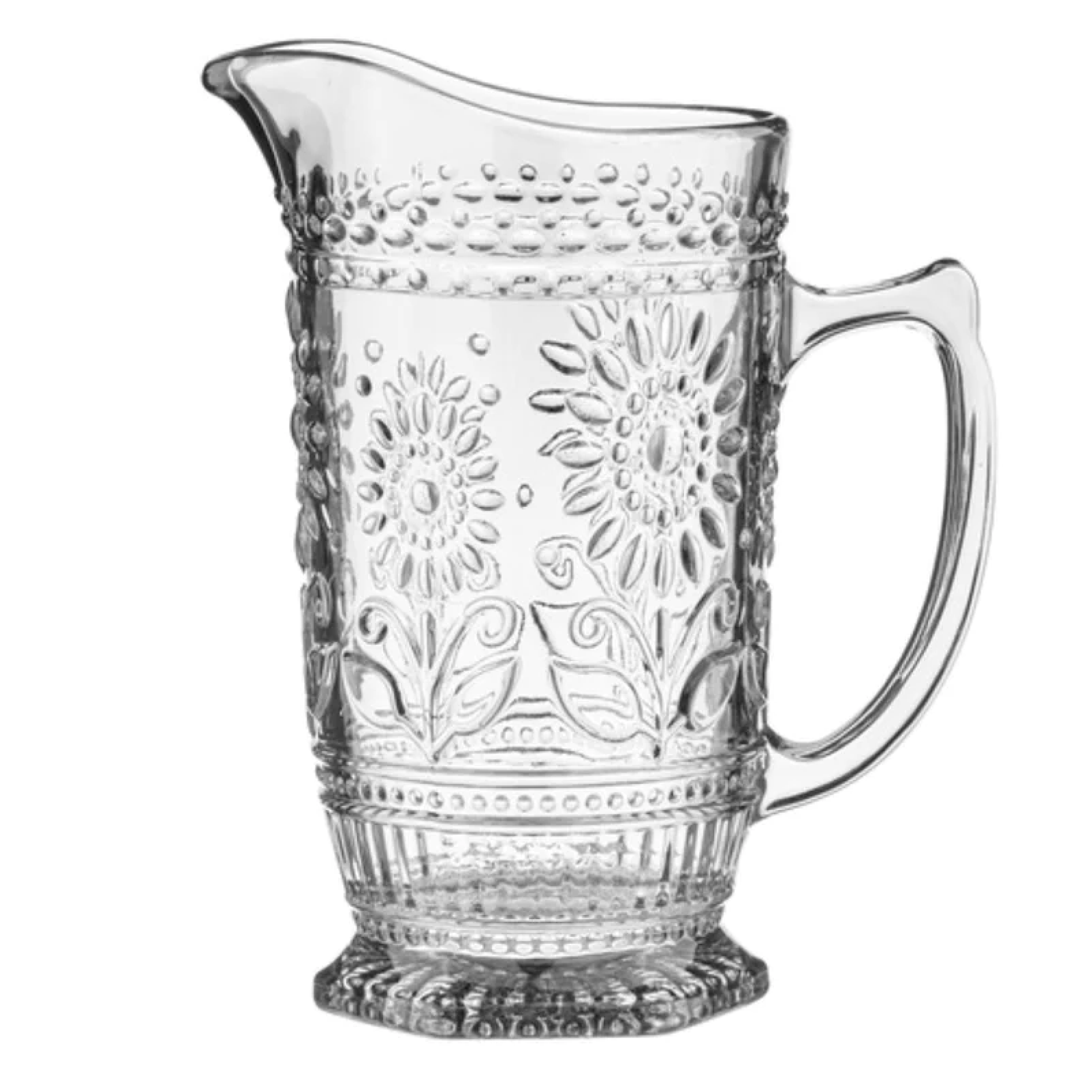 Product Description This Retro Clear Glass jug is as functional as it is beautiful. Highlighted with a detailed sunflower design... Read more