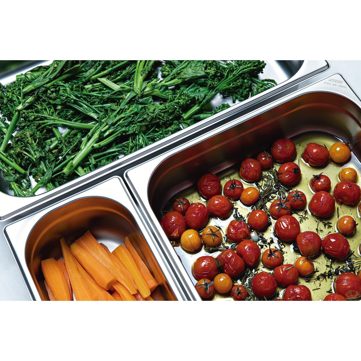 - مزودة بحواف عريضة مدورة، مما يسهل عملية التنظيف ويتيح وضع الأواني فوق بعضها.